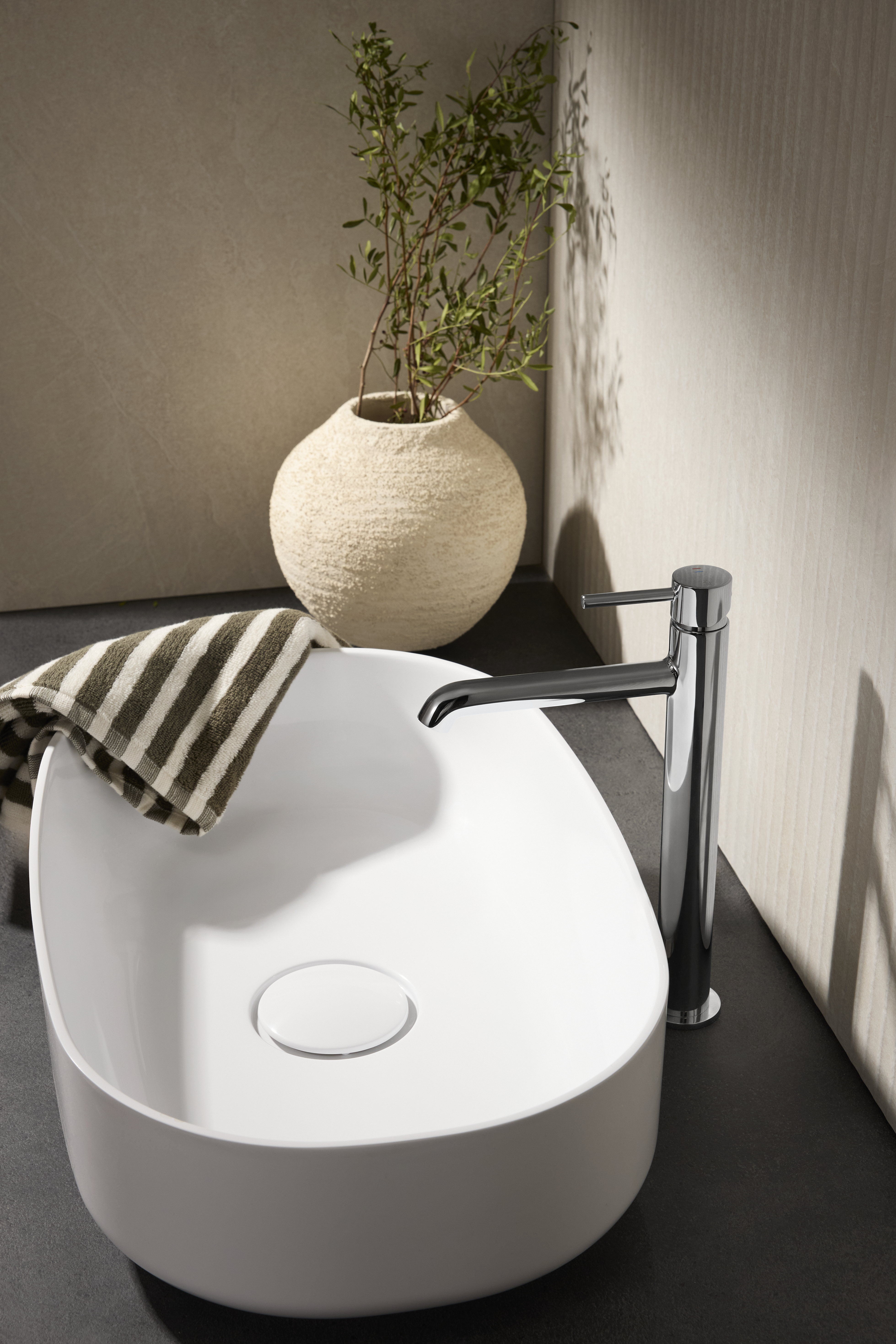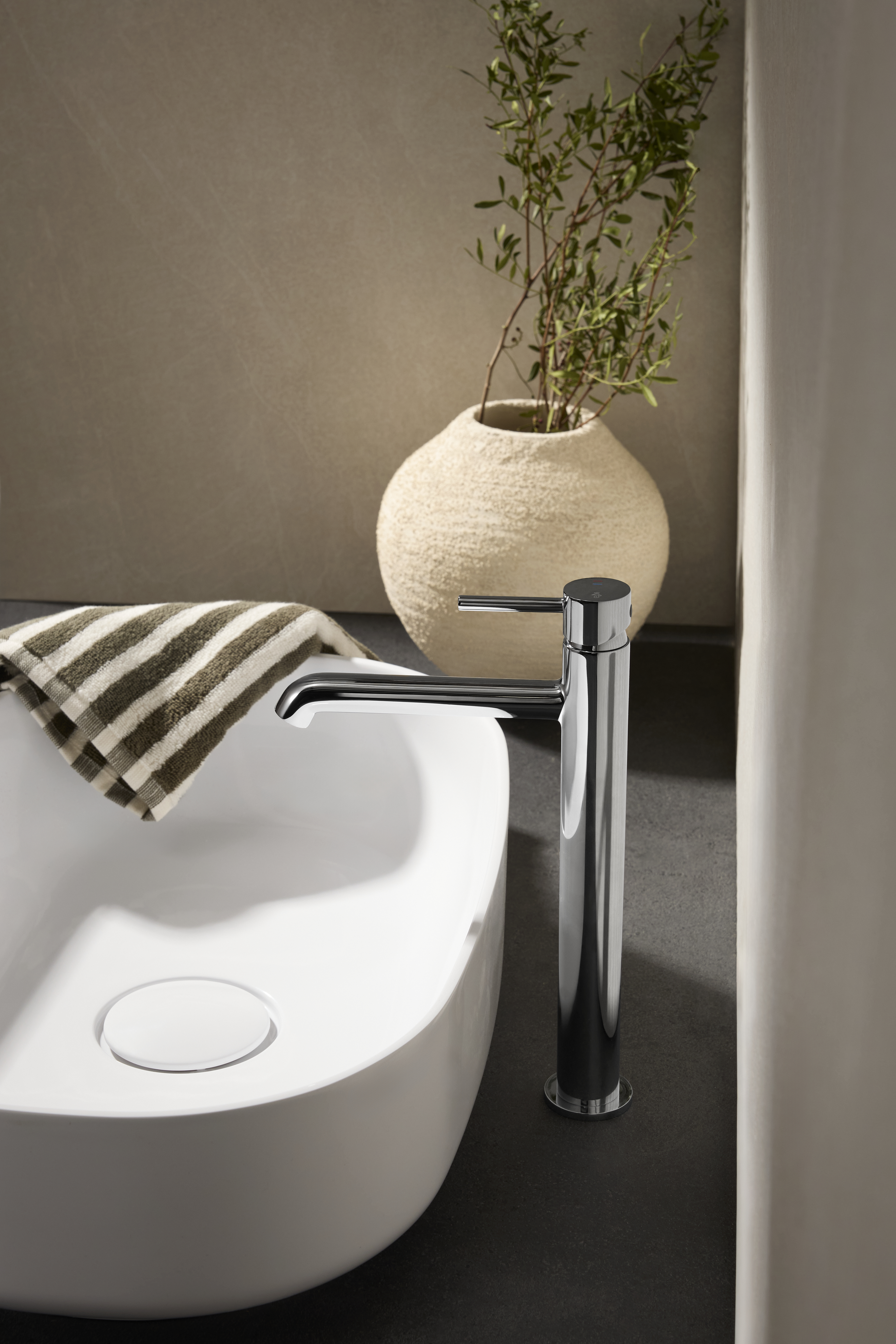 Bateria moza mini umywalkowa, nablatowa, stojąca, z korkiem klik-Klak, chrom