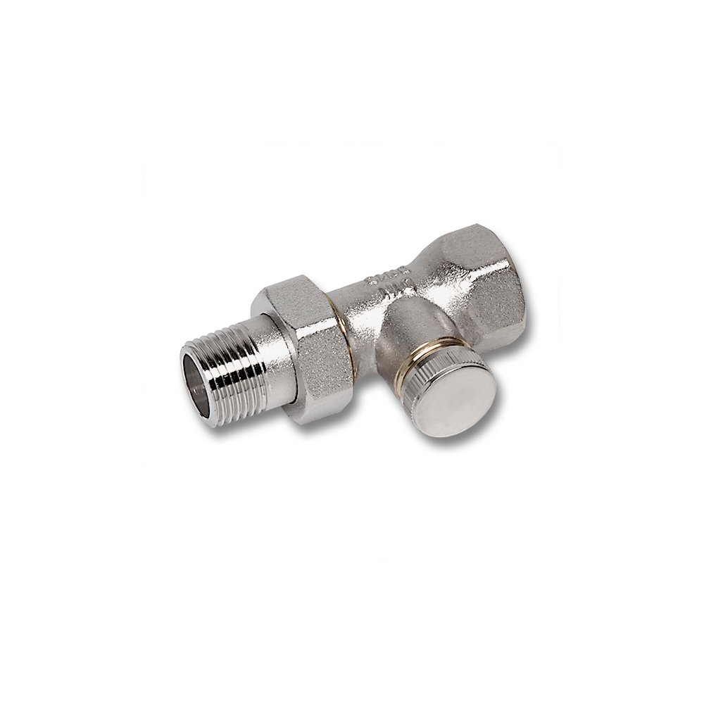 Króciec grzejnikowy, kuty mosiądz PN 10, zgodnie z DIN 3842, gwint wew./zew., Zamykany i regulowany, prosty, max. 100 ° C, niklowany
