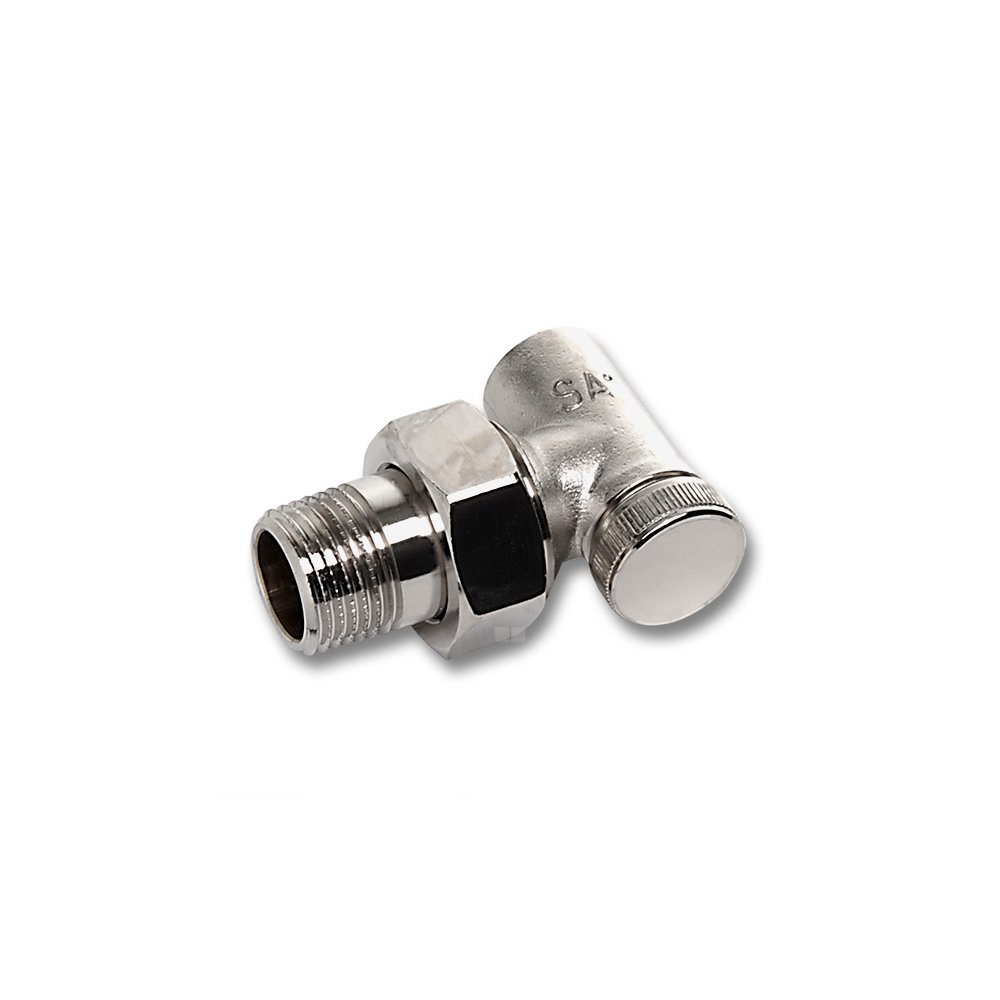 Króciec grzejnikowy, kuty mosiądz PN 10, końcówka do lutowania i gwint zewnętrzny, zamykana i regulowana, kątowa, max. 100 ° C, niklowany