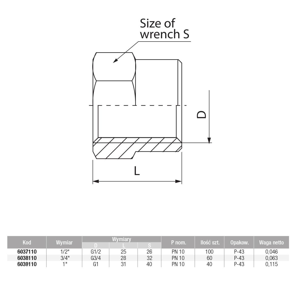 Mufa VALVEX V-Pex, mosiądz, 3/4'' (GW), 28 mm