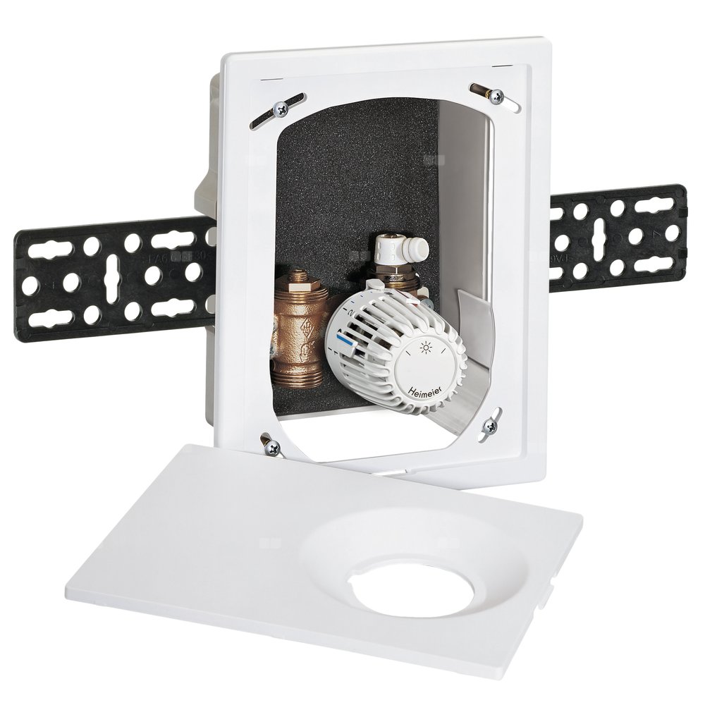 Gwarantuje, że wymagany przepływ nie zostanie przekroczony. Możliwość wyrównania w razie zabudowy odchylonej od pionu do 6˚ dla każdej ze stron. Pokrywa maskująca śruby mocujące. Elastyczne dopasowanie do wszystkich konstrukcji ścian, głębokość kompensacji 30 mm.
