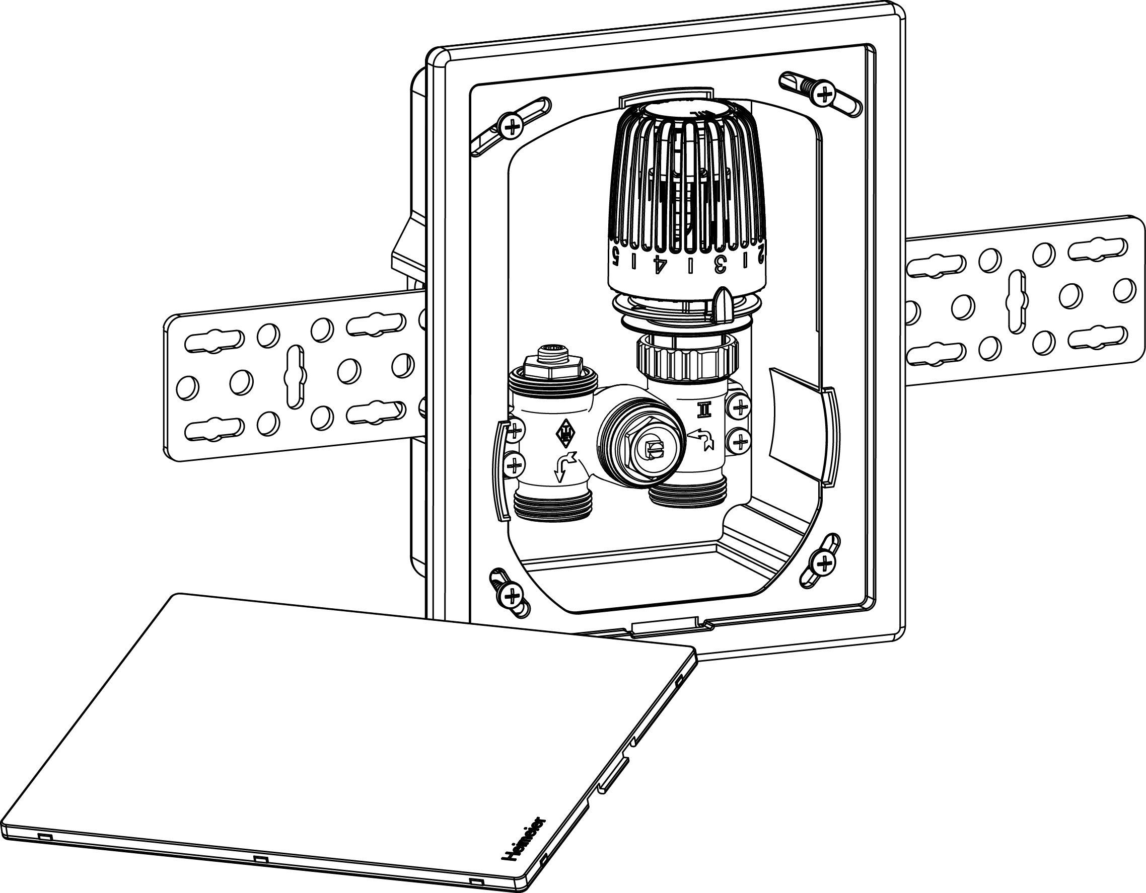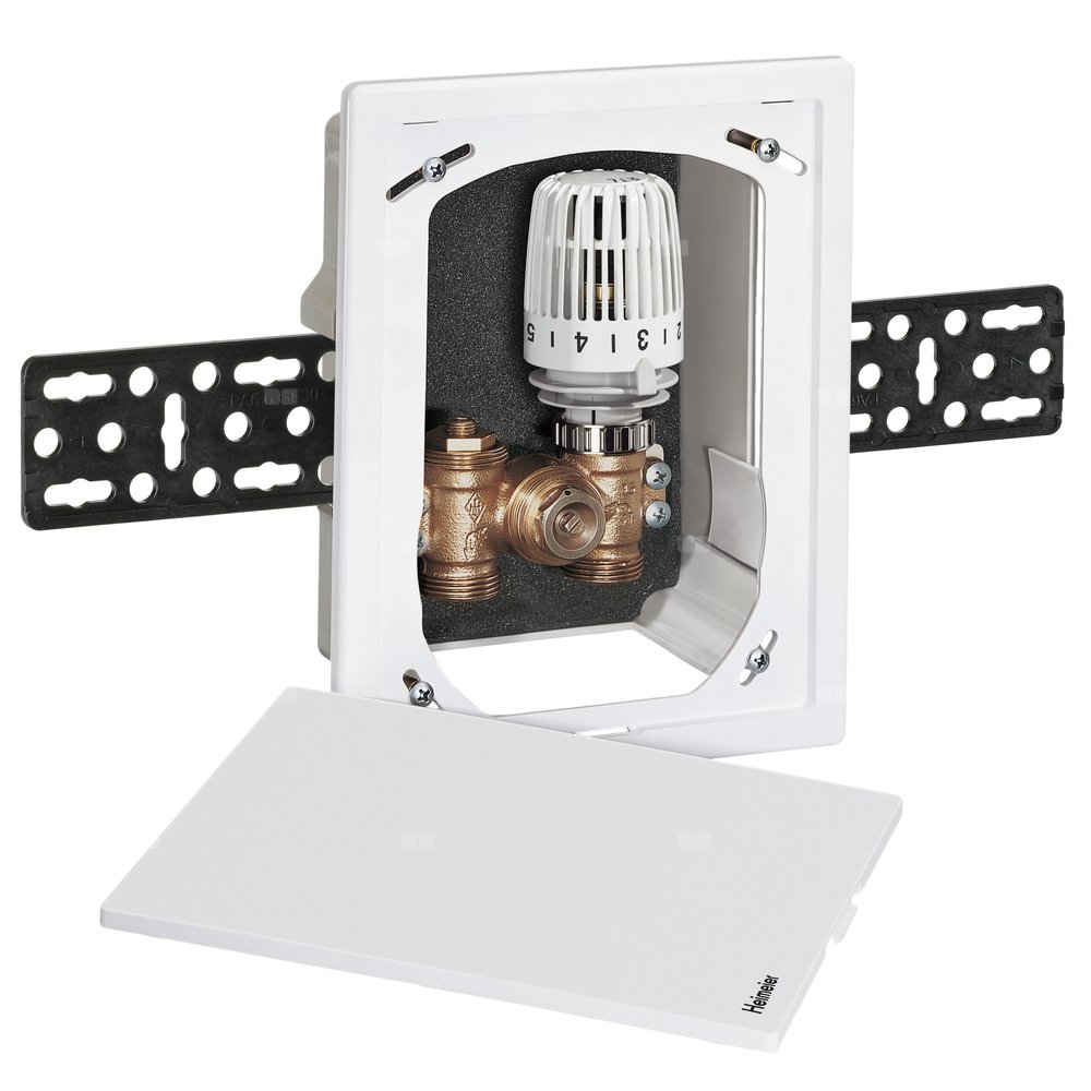 Multibox stosowany jest do regulacji ogrzewania podłogowego, ogrzewania płaszczyznowego, oraz mieszanych układów ogrzewania grzejnikowego i podłogowego w pojedynczych pomieszczeniach. Wyrównanie w razie zabudowy odchylonej od pionu do 6° dla każdej ze stron. Pokrywa maskująca śruby mocujące. Models in white or chrome. Możliwość montażu we wszystkich rodzajach ścian z kompensacją głębokości do 30 mm.