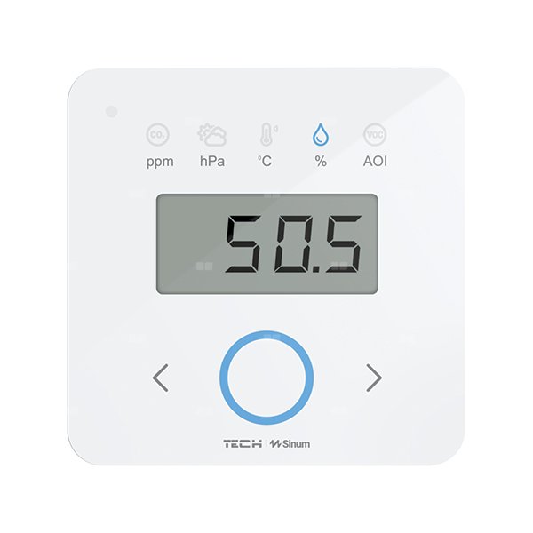 Multiczujnik MC-02 to urządzenie, które łączy w sobie wiele funkcji. Jest to regulator pokojowy z możliwością pomiaru i wyświetlania dodatkowych danych takich jak: pomiar lotnych związków organicznych, stężenie CO2, ciśnienie atmosferyczne, temperatura powietrza, wilgotność powietrza.