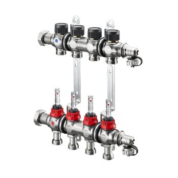 belka zbierająca z wkładkami zaworowymi M 30 x 1,5 do regulacji termostatycznej lub elektronicznej