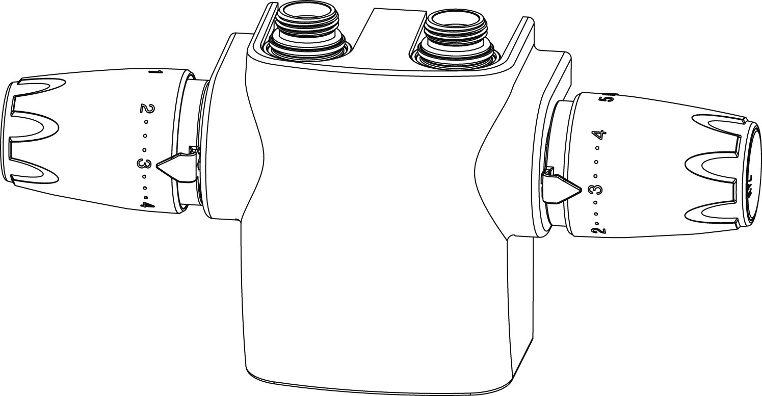 Do podłączenia grzejników dolnozasilanych i ogrzewania podłogowego dla sterowania temperaturą pomieszczenia oraz ograniczenia temperatury powrotnej czynnika - RTL. Odległość między środkami złączy wynosi 50 mm. Do montażu kątowego. Obie wkładki termostatyczne zawierają wkładkę V-exact II z precyzyjną bezstopniową nastawą wstępną od 1 do 8.