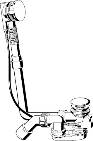 Multiplex-komplet odpływowo-przelewowy, Visign M5, płaskie wykonanie: tylko 33 mm wymaganego miejsca z tyłu wanny. Wyposażenie: Pokrętło chromowane, korek do zaworu chromowany, syfon, łuk odpływowy 45°, zawór chromowany. Dane techniczne: wysokość zamknięcia wodnego 50 mm, wydajność odpływu przy wysokości spiętrzenia 300 mm 0,92 l/s, wydajność przelewu wysokość spiętrzenia 60 mm nad środkiem otworu przelewowego 0,63 l/s. Wskazówka: Patrz aktualny przegląd wskazówek dotyczących zastosowania!, wg PN-EN 274, nr wzoru 6162.45, nr kat. 101 909, DN: 40/50 długość cięgna Bowdena: 560 L: 100-260 H: 180-400 wanna standardowa, do wanien z otworem odpływowym Ø 52,