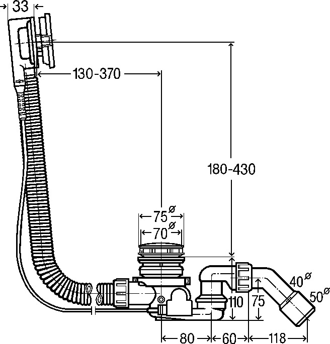 Multiplex Trio F-komplet odpływowo-przelewowy, płaskie wykonanie: tylko 33 mm wymaganego miejsca z tyłu wanny. Przeznaczenie: dopływ wody przez korpus odpływowy. Wyposażenie: Pokrętło Visign M5, kołpak chromowany, moduł nasadki, syfon, łuk odpływowy 45°. Wyposażenie: Pokrętło Visign M5, kołpak chromowany, moduł nasadki, syfon, łuk odpływowy 45° bez możliwości klejenia. Dane techniczne: wysokość zamknięcia wodnego 50 mm, wydajność odpływu przy wysokości spiętrzenia 300 mm 0,85 l/s, wydajność przelewu wysokość spiętrzenia 60 mm nad środkiem otworu przelewowego 0,60 l/s. Wskazówka: Patrz aktualny przegląd wskazówek dotyczących zastosowania!, wg PN-EN 274, nr wzoru 6145.51, nr kat. 675 486,