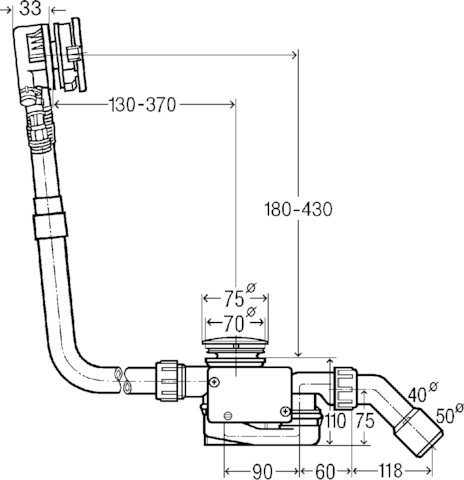 Multiplex Trio-komplet odpływowo-przelewowy korek do zaworu z napędem, nr wzoru 6175.1 DN: 40/50 wanna z odpływem pośrodku do wanien z otworem odpływowym fi 52