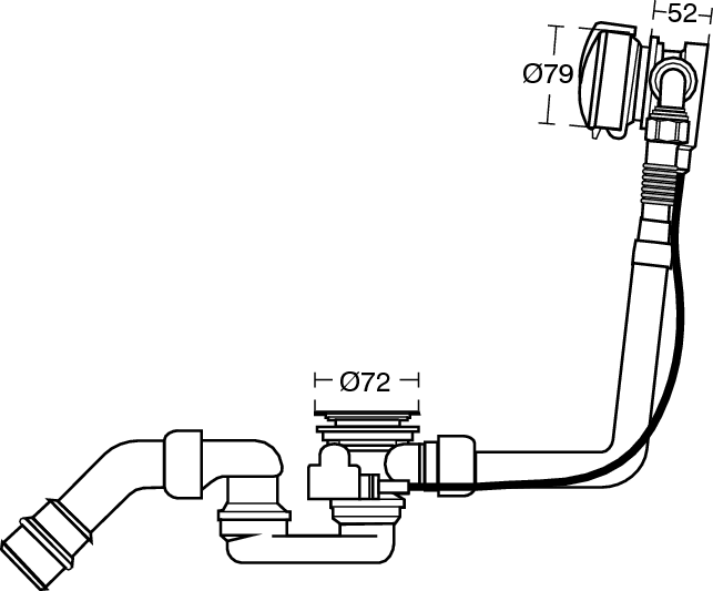 Zestaw odpływowo-przelewowy Multiplex Trio. Chrom, Ø 52 mm, ze zintegrowanym systemem napełniania wanny przez przelew.