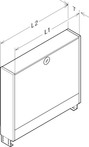 Natynkowa szafka rozdzielacza. Przeznaczenie: ogrzewanie powierzchniowe Fonterra. Zastosowanie: rozdzielacz obwodów grzejnych DN25 nr wzoru 1010, blacha stalowa ognioodporna/biały drogowy=RAL 9016, z regulacją wysokości od 630–790 mm, głębokość 140 mm. Wyposażenie: Rama i drzwi, zdejmowana zaślepka otworów przyłączeniowych do bezpiecznego prowadzenia rur w obszarze przyłączeniowym, wspornik uniwersalny do rozdzielacza obwodów grzejnych. Wskazówka: W przypadku korzystania z jednostki bazowej Fonterra Smart Control CO w połączeniu ze skrzynką przekaźnikową Fonterra Smart Control, co najmniej skrzynka rozdzielcza typu 560 (do maks. 5 obiegów rozdzielacza)! Od 6 obiegów należy wybrać typ 700!, nr wzoru 1294.1, nr kat. 610 333, Typ: 560 L1: 525 L2: 575 przyłącze rozdzielacza górne: ≤5 licznik ciepła górny: ≤5 regulator różnicy ciśnień + licznik ciepła pionowy: ≤3 regulator różnicy ciśnień + przyłącze pionowe: ≤4 przyłącze rozdzielacza + zawór strefowy poziomy przyłącze pionowo: ≤4 przyłącze rozdzielacza ze stacją regulacyjną nr wzoru 1254.2: ≤4