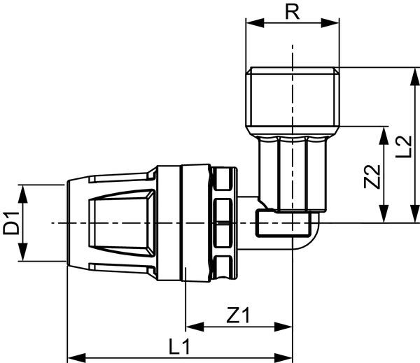 TECElogo-Push nypel przejściowy kątowy z mosiądzu standard