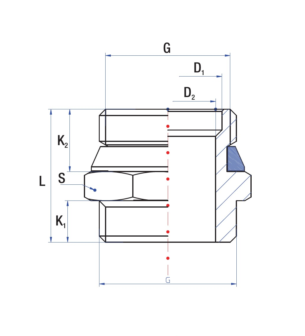 Nypel RUMET mosiądz 1'' x 1'' (GZ), z uszczelką, 34 mm