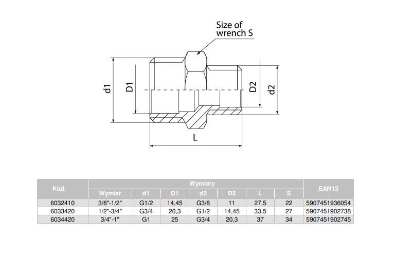 Znamionowa średnica wewnętrzna połączenia 2