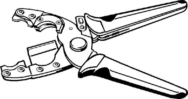 Nożyce do rur. Przeznaczenie: rura z tworzywa sztucznego Viega. Wyposażenie: Obcinak do rur ochronnych, nr wzoru 5341, nr kat. 652 005, dla d: 12-25