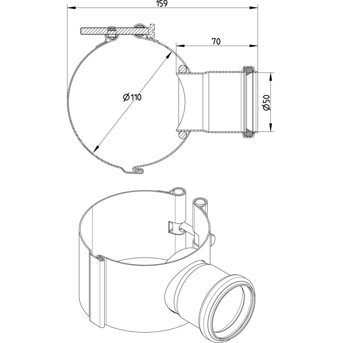 Obejma DN =110 z bocznym dopływem DN =50mm
