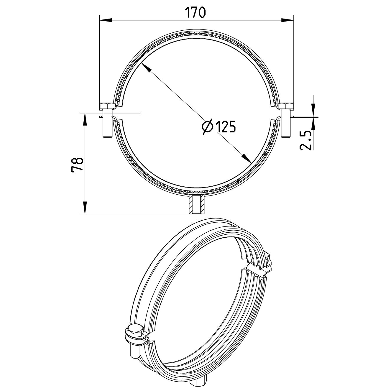 Obejma DN =125mm , stal kwasoodporna