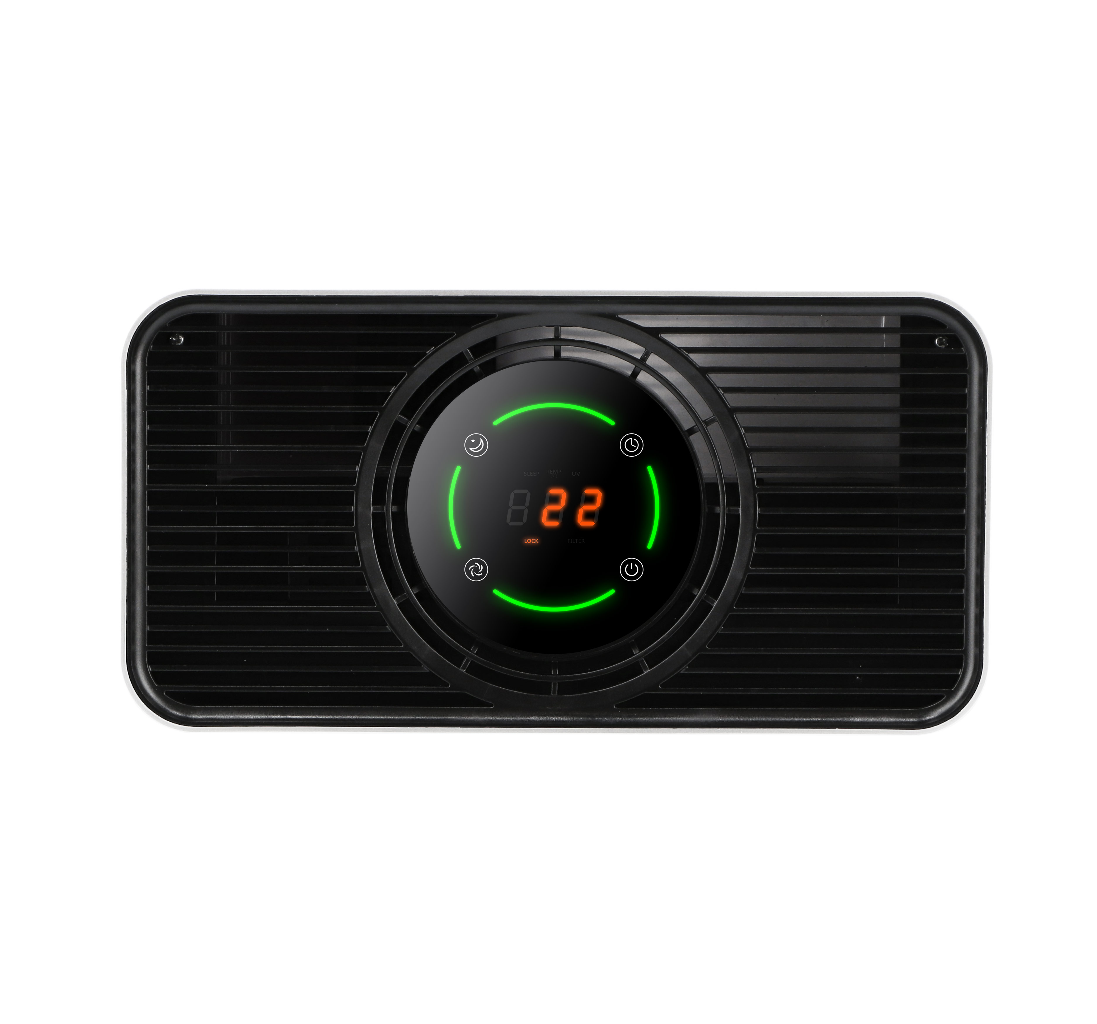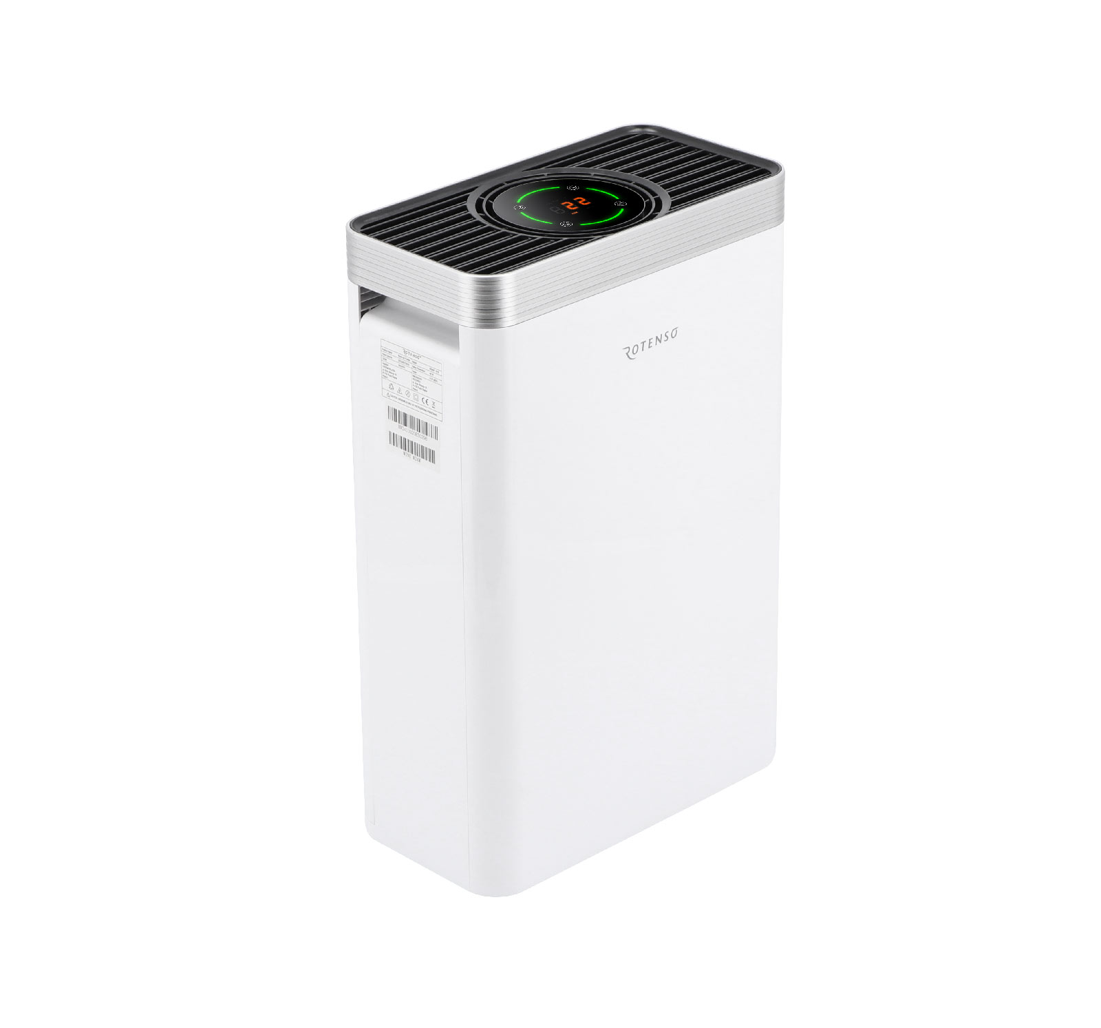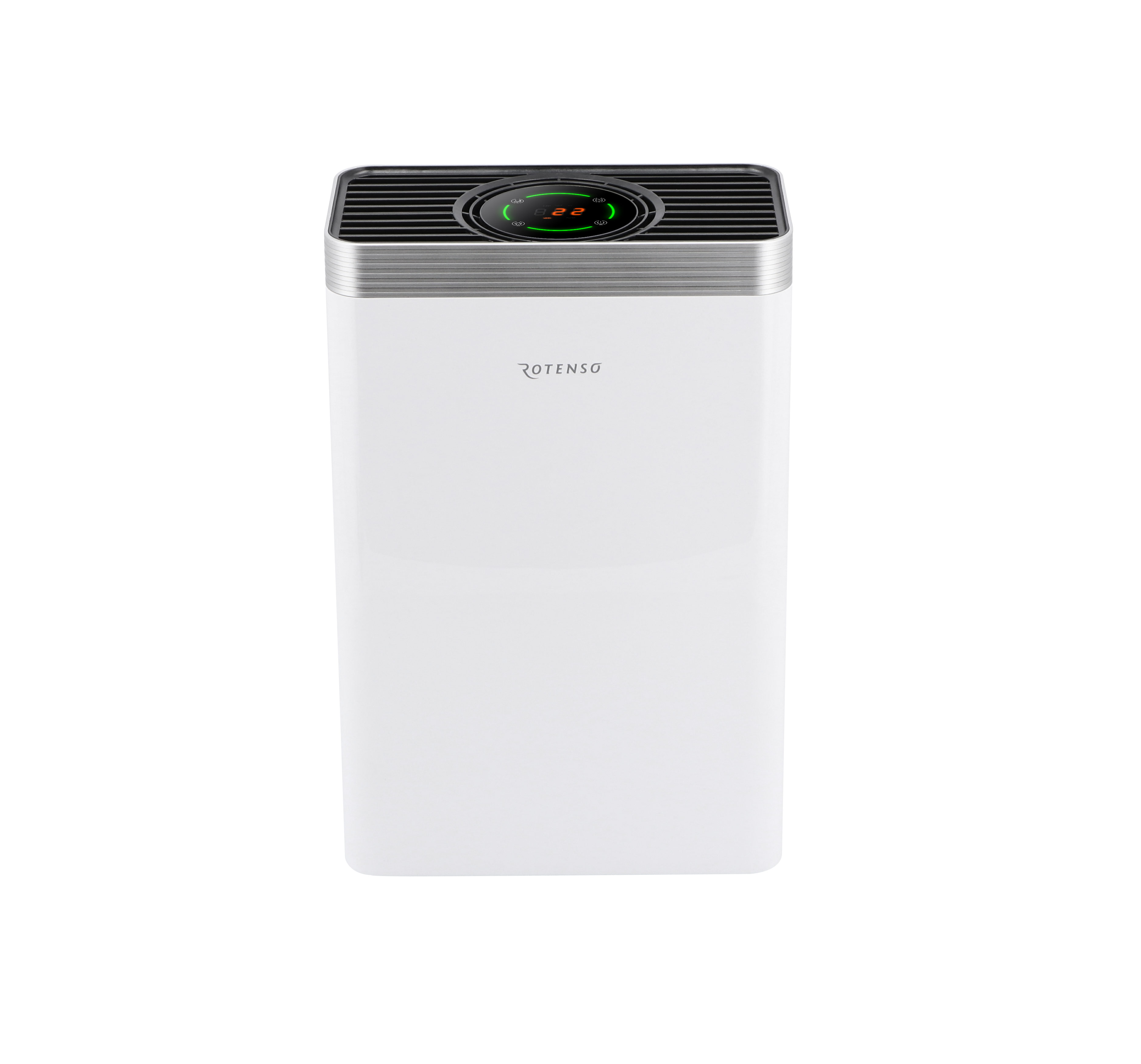 Oczyszczacz powietrza Rotenso® Wint na bieżąco monitoruje stan jakości powietrza i sygnalizuje jego aktualny stan. Dodatkowo wyposażony jest w wyświetlacz LCD informujący o aktualnym stężeniu cząstek PM 2,5.