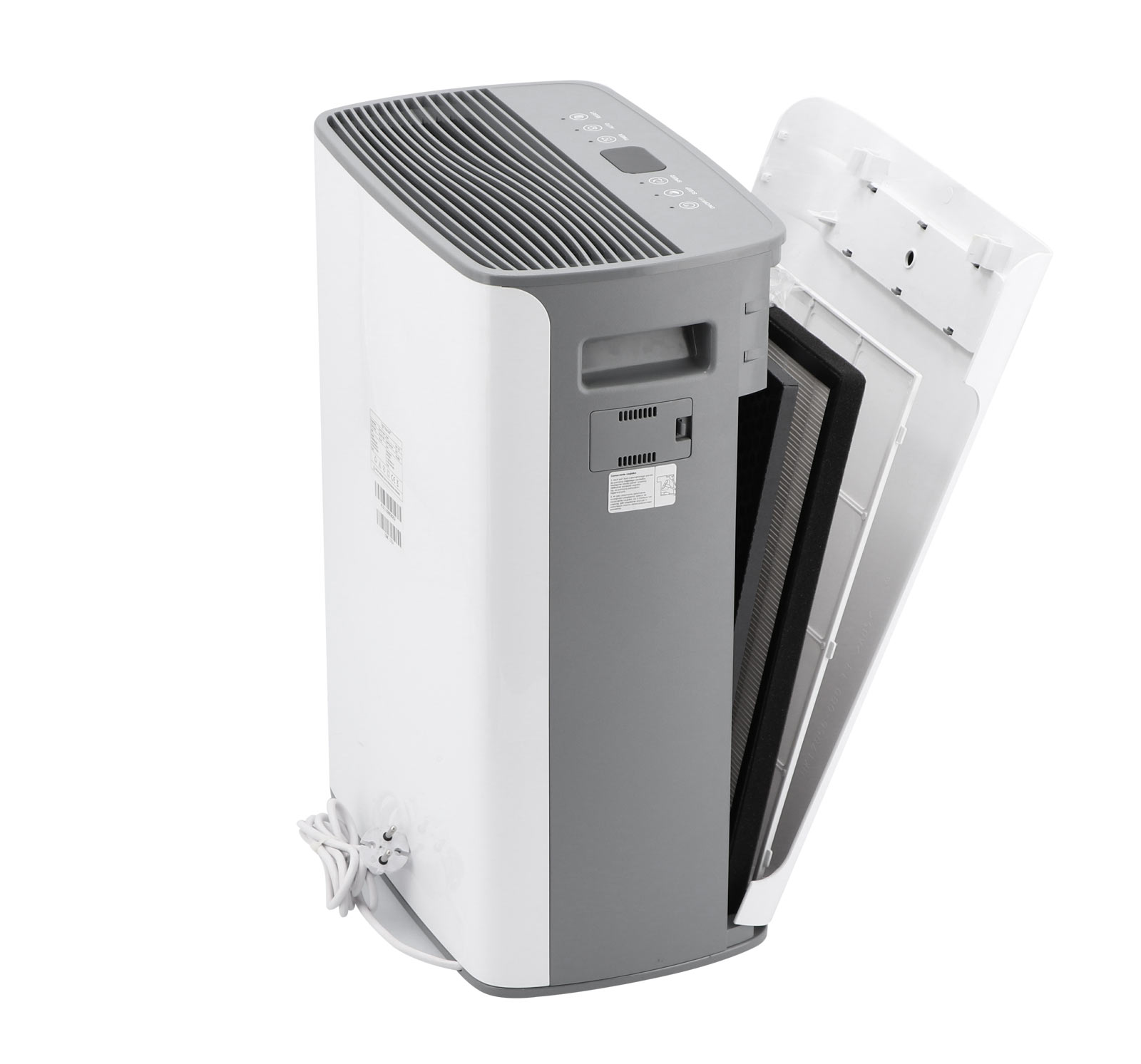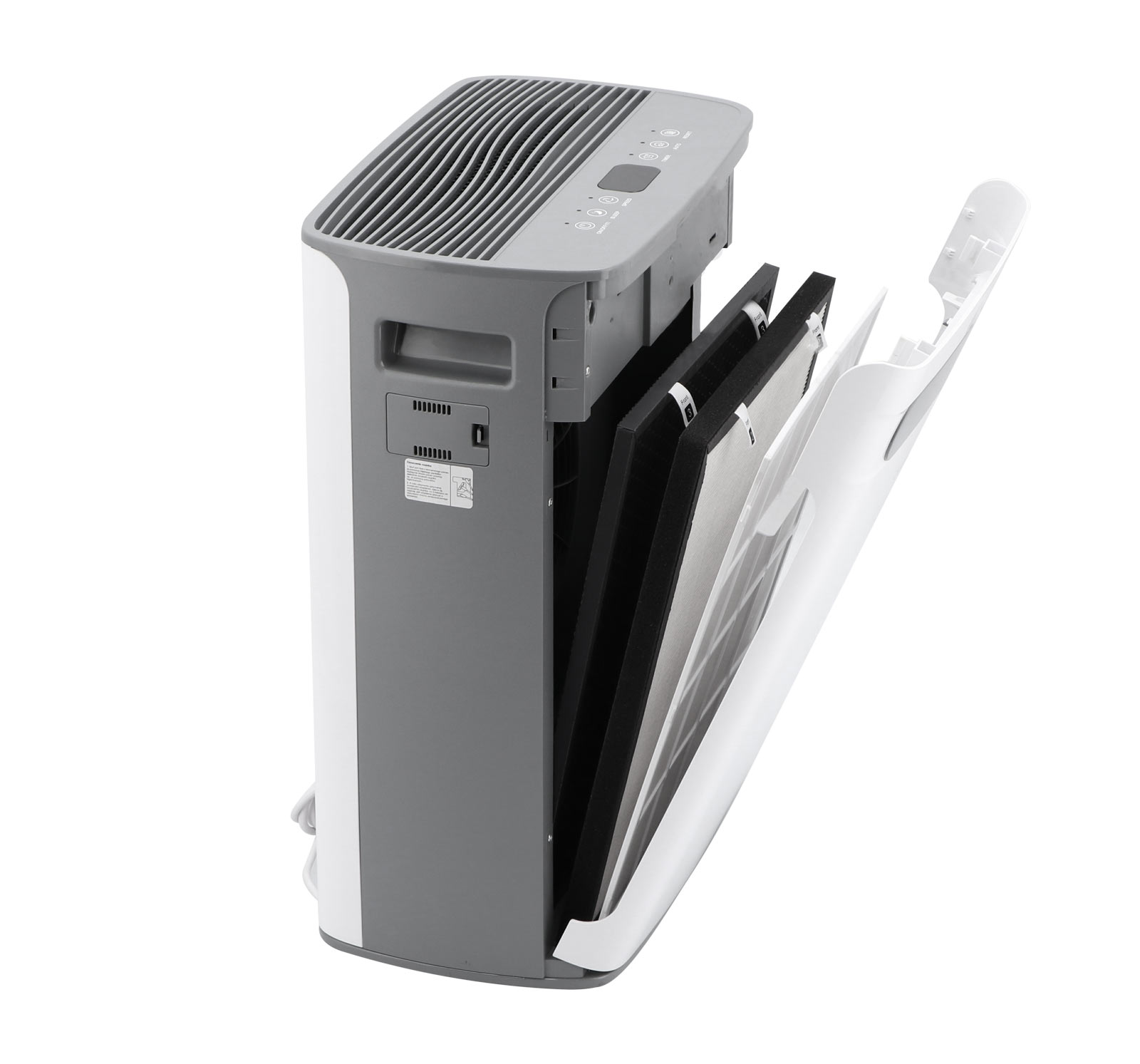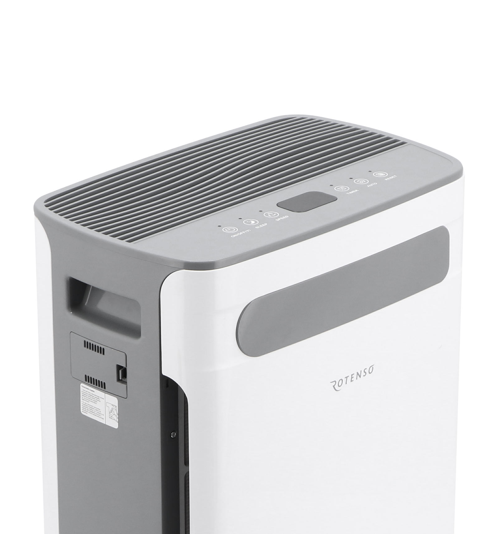 Oczyszczacz powietrza Rotenso® Ione z funkcją nawilżania powietrza to urządzenie o wydajności 310 m3/h, dedykowany dla pomieszczeń do 70 m². Charakteryzuje się nowoczesnym, minimalistycznym wyglądem i przyjaznymi dla użytkownika funkcjami, w tym obsługą przez aplikację mobilną. Oczyszczacz Rotenso® Ione wyróżnia się wieloetapową filtracją powietrza. Posiada filtr elektrostatyczny, filtr antybakteryjny EPA iAIR klasy E12, filtr z aktywnym węglem iAIR oraz filtr wodny nawilżacza H2O piurR iAIR. Ostatnim etapem filtracji jest eliminacja zanieczyszczeń i uzupełnienie powietrza w jony ujemne przez Super Jonizator iAIR.. Oczyszczacz powietrza Rotenso® Ione jest wyposażony we wskaźnik LCD poziomu stężenia częstek PM 2,5.