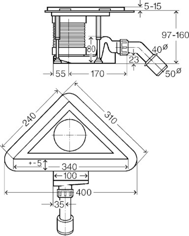 Advantix-odpływ narożny. Przeznaczenie: uszczelnienie cienkowarstwowe (do natrysków kafelkowanych) lub membrana uszczelniająca, stal nierdzewna 1.4301, nie występuje: blacha ścienna. Wyposażenie: Zestaw regulowanych nóżek, ramka z regulacją wysokości i boczną, regulowane zamknięcie wodne 35–50 mm z zabezpieczeniem przed wysysaniem wody z syfonu, możliwość czyszczenia przyłącza, wyjmowany element syfonu, sitko, element do wyrównania wysokości, kołnierz uszczelniający, materiał do mocowania, mata uszczelniająca Schlüter-KERDI z klejem. Dane techniczne: klasa obciążenia K=300 kg, wydajność odpływu przy wysokości spiętrzenia 10 mm 0,75‑1 l/s, wydajność odpływu przy wysokości spiętrzenia 20 mm 0,8‑1,1 l/s. Wskazówka: W przypadku tego modelu odpływu z powodu niskiego wariantu zabudowy w zakresie rury odpływowej nie jest możliwe wystarczające pokrycie z jastrychu. Należy to uwzględnić wcześniej na etapie projektu. Należy odpowiednio zaplanować możliwe rozwiązania uwzględniające wielkość płytek i/lub ewentualną masę żywicy epoksydowej!, wg PN-EN 1253, nr wzoru 4972.83, nr kat. 627 003, DN: 40/50 H zab.: 110-200 odpływ poziomy, wykonanie: błyszczący