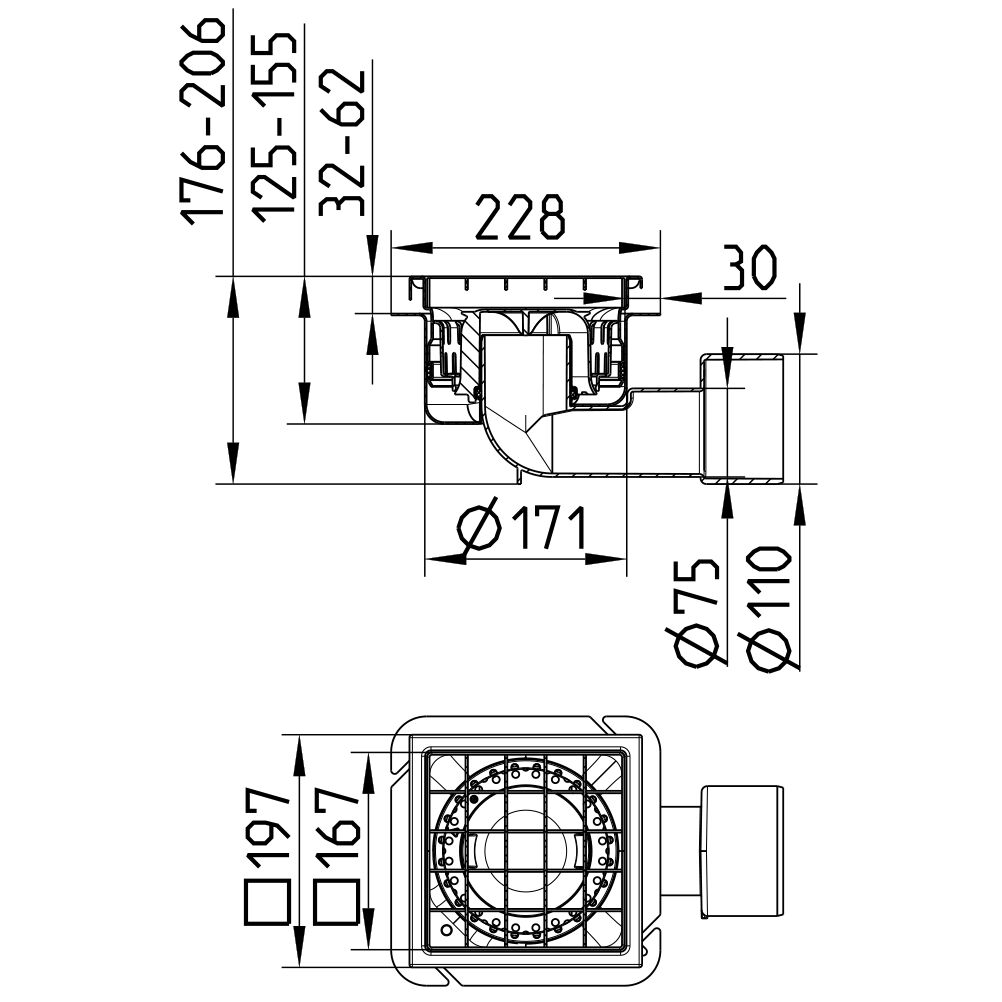 Odpływ podłogowy COMPACT 200X200