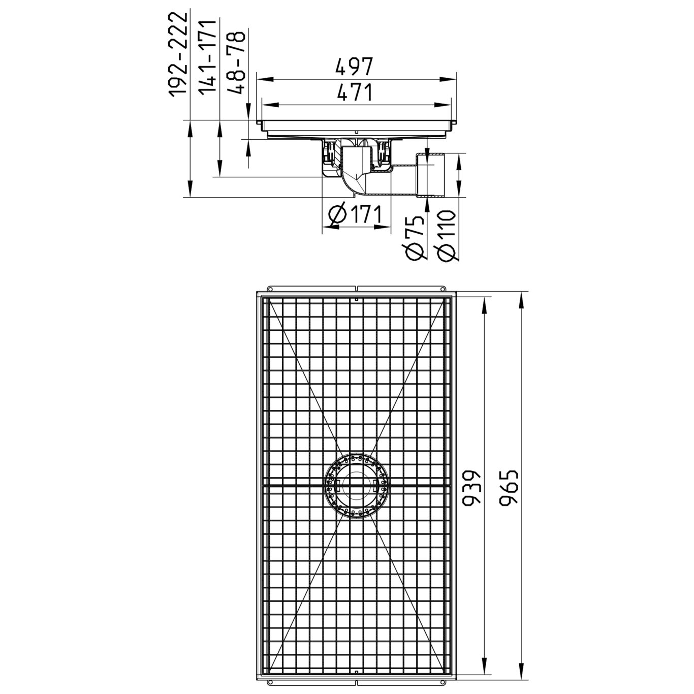 Odpływ podłogowy COMPACT 500X1000