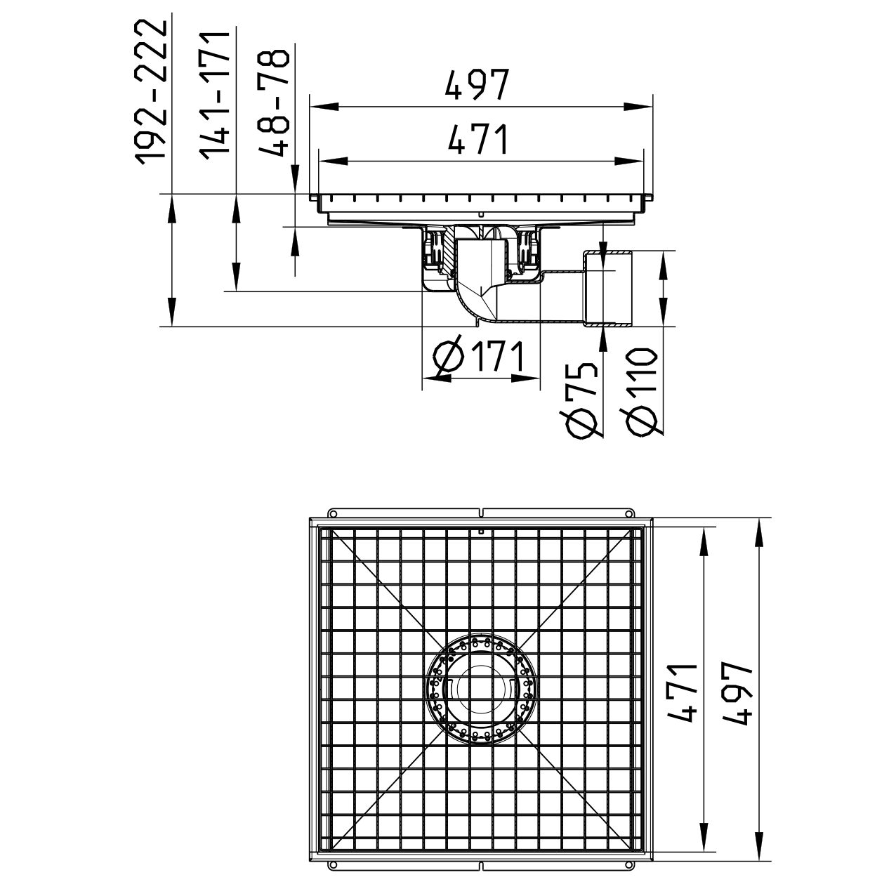 Odpływ podłogowy COMPACT 500X500
