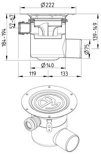 Odpływ podłogowy, regulowana część dolna MULTI, niska