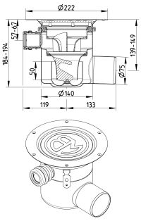 Odpływ podłogowy, regulowana część dolna MULTI, niska