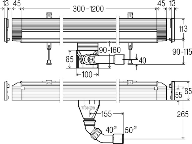 Odpływ prysznicowy prostokątny VIEGA 496710, 1200 x 113 x 85 mm, dł: 1200 mm, z syfonem