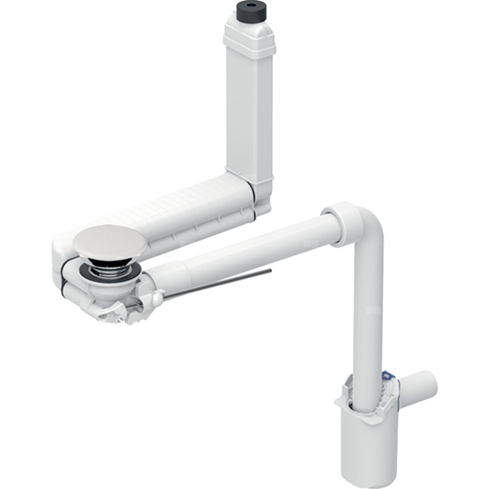 Zgodność z EN 274-3 Higieniczne dzięki optymalnemu ukształtowaniu przepływu Zamykany zawór zestawu odpływowego Uruchamianie za pomocą dźwigni Niewidoczna funkcja przelewu Możliwość dopasowania do długości i wysokości umywalki Ze zintegrowanym wkładem grzebieniowym Do umywalek bez widocznego przelewu Do umywalek o grubości materiału 15-20 mm w pobliżu odpływu Do niewymagającego dużej ilości miejsca montażu pod umywalkami z szafką bez otworu na syfon Do niewymagającego dużej ilości miejsca montażu pod umywalkami Materiał: Mosiądz chromowany / tworzywo sztuczne / ceramika sanitarna Kolor główny: Biały Zawartość: Zawór zestawu odpływowego Kolano przyłączeniowe 90° z PP Dźwignia uruchamiająca Uszczelka gumowa z EPDM Korek Syfon z wkładem syfonującym Pokrywa odpływu z ceramiki Zestaw odpływowo-przelewowy do umywalki
