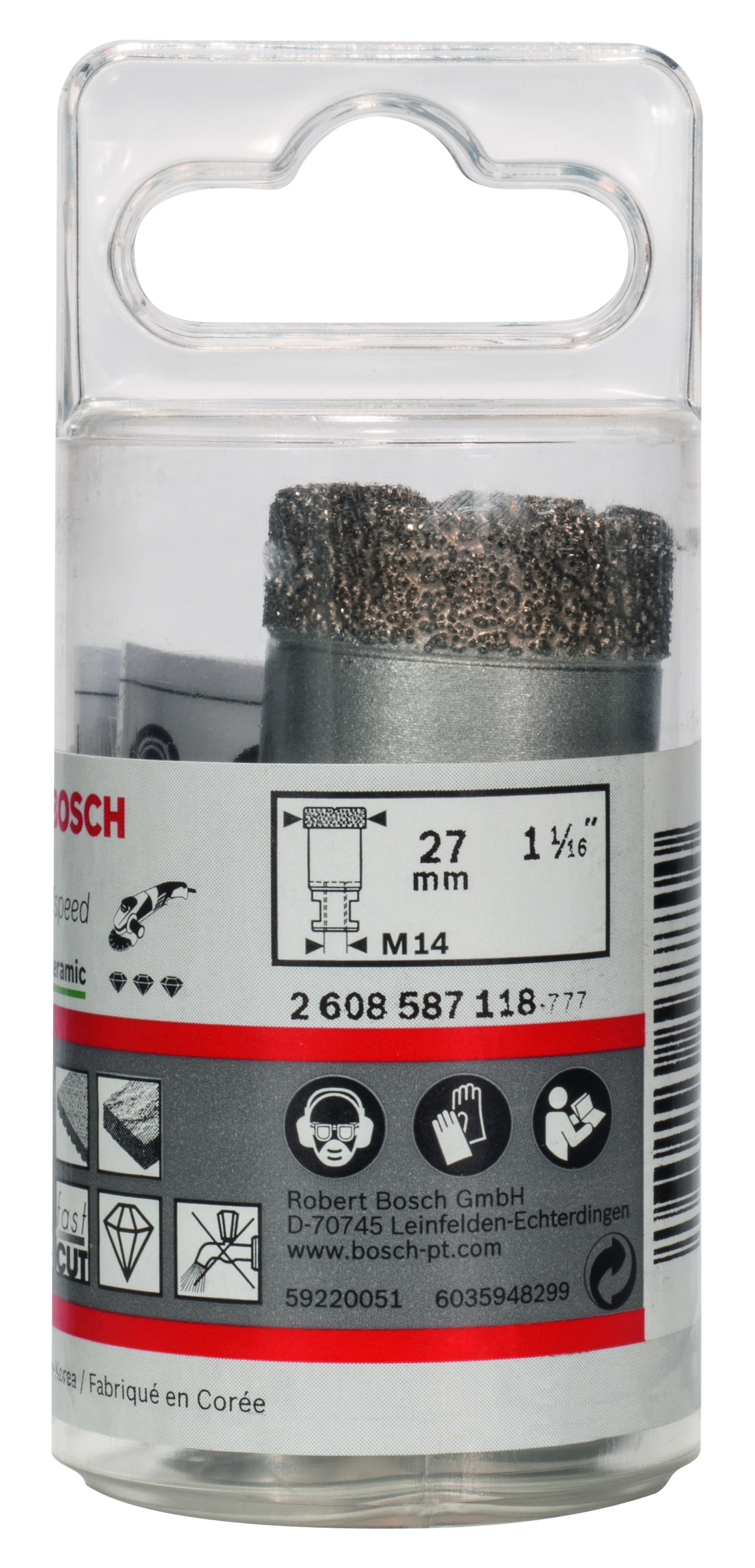 Diamentowa koronka Dry Speed charakteryzuje się wysoką trwałością w przypadku wiercenia na sucho w twardej ceramice