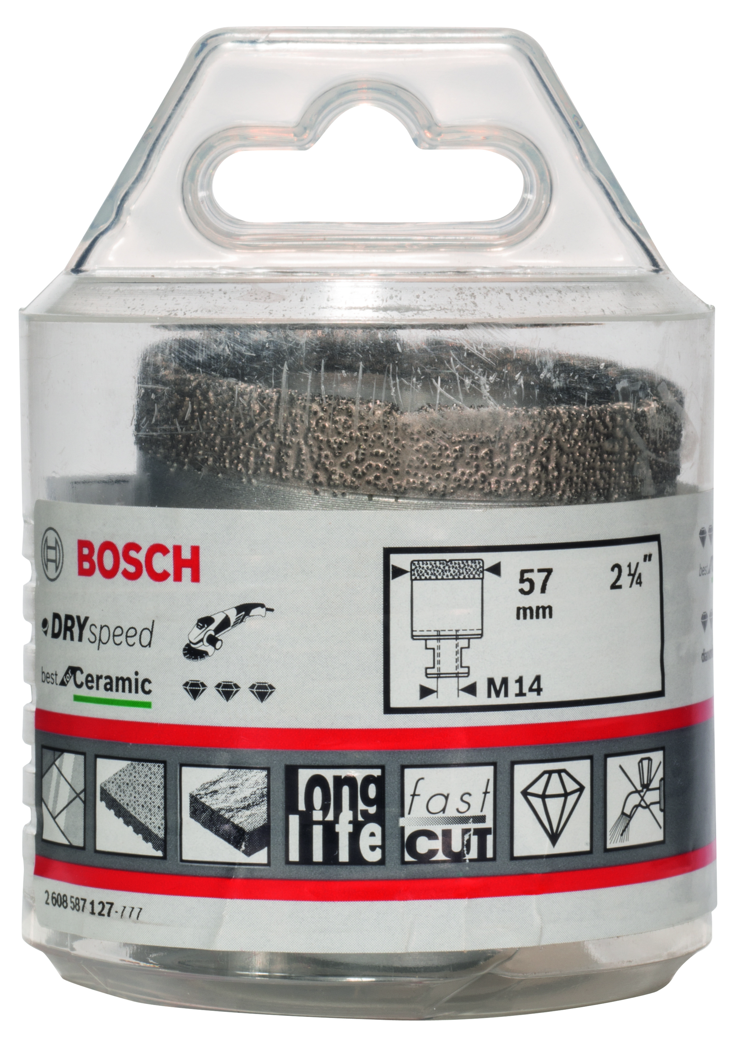 Diamentowa koronka Dry Speed charakteryzuje się wysoką trwałością w przypadku wiercenia na sucho w twardej ceramice