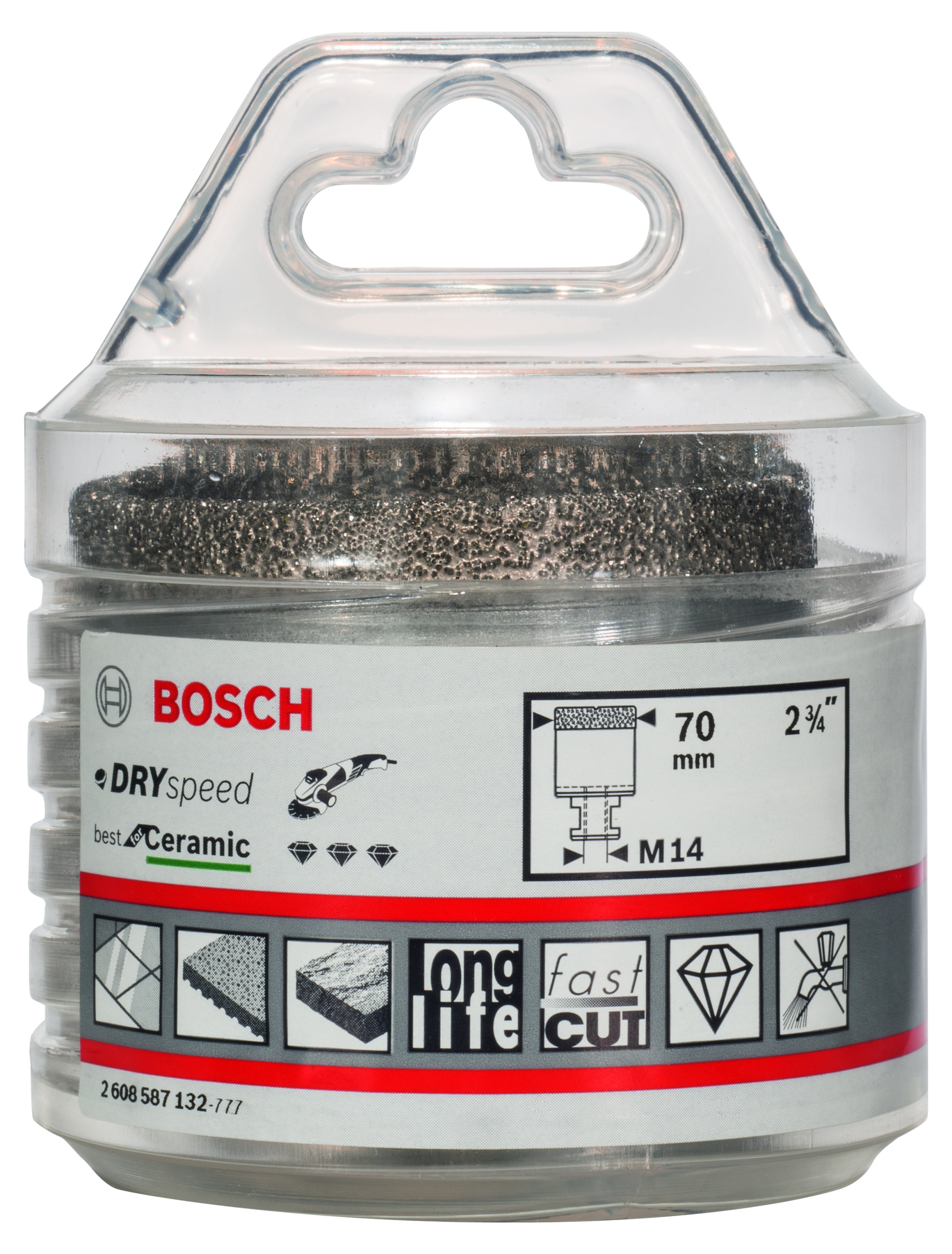 Diamentowa koronka Dry Speed charakteryzuje się wysoką trwałością w przypadku wiercenia na sucho w twardej ceramice