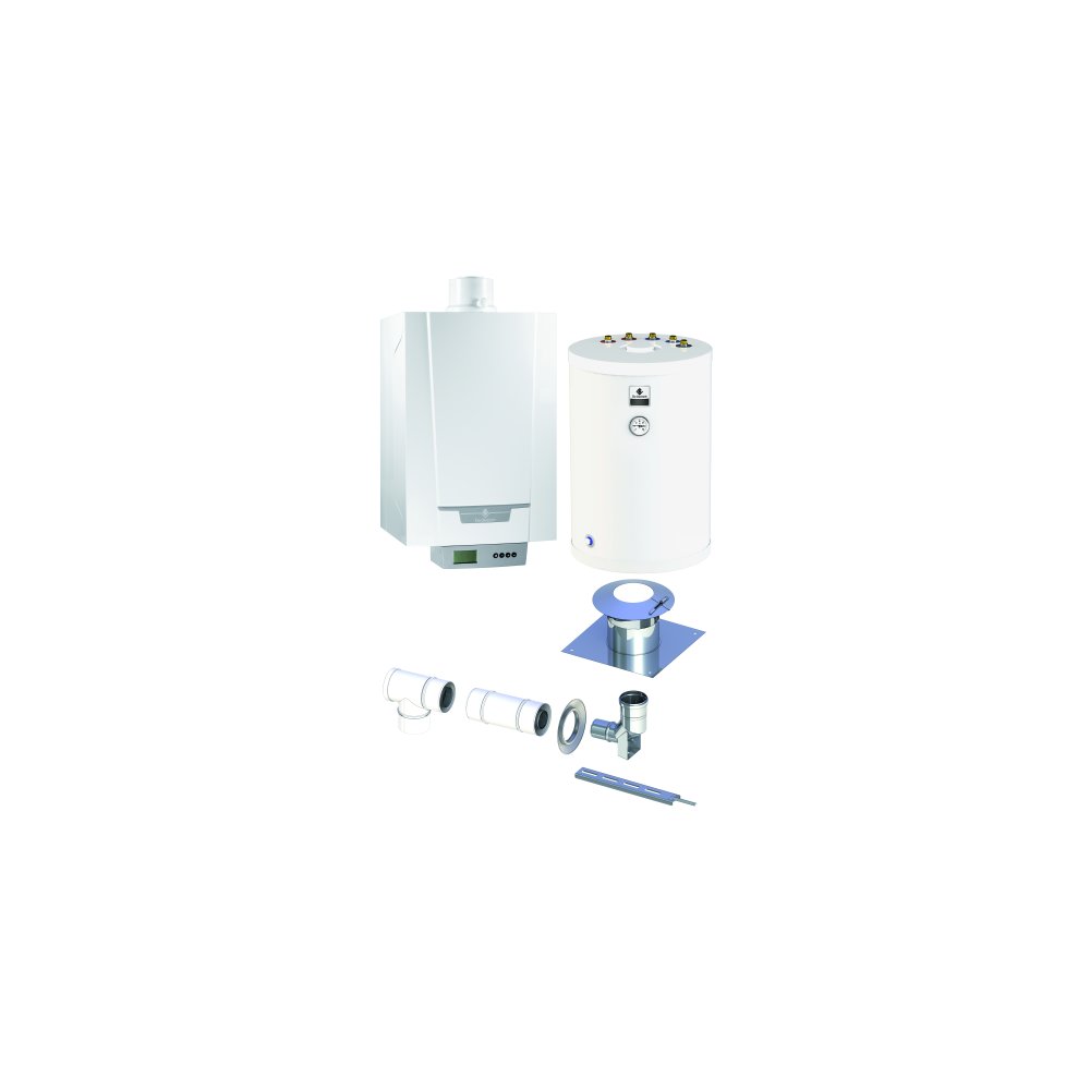 Pakiet - Kocioł gazowy jednofunkcyjny DE DIETRICH MCR3 Evo 24T kondensacyjny wiszący 6.1 - 24.8 kW + Zestaw powietrzno-spalinowy szachtowy + Zasobnik c.w.uSRK100MG