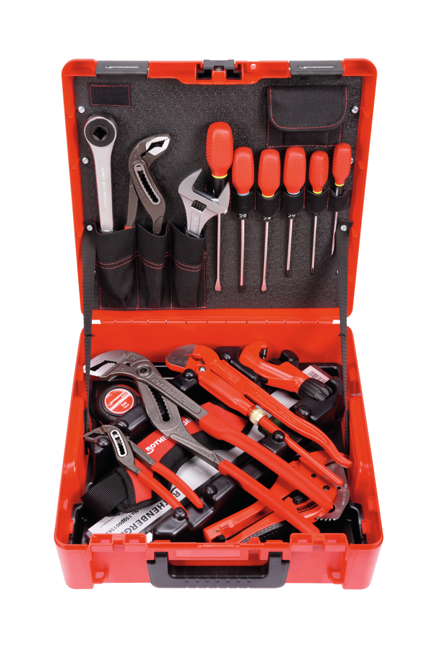 Zestaw 18-częściowych narzędzi ręcznych jest idealny do zastosowania w obszarze SHK. Dzięki uniwersalnym narzędziom można trzymać, chwytać, ciąć, mierzyć i wkręcać. Do bezpiecznego transportu służy solidna walizka ROCASE z praktycznymi kieszeniami i uchwytami na narzędzia. Wyściełany pasek na ramię wspomaga przenoszenie i jest oczywiście zawarty w zakresie dostawy, dzięki czemu masz zawsze wolne ręce do innych narzędzi lub materiałów.