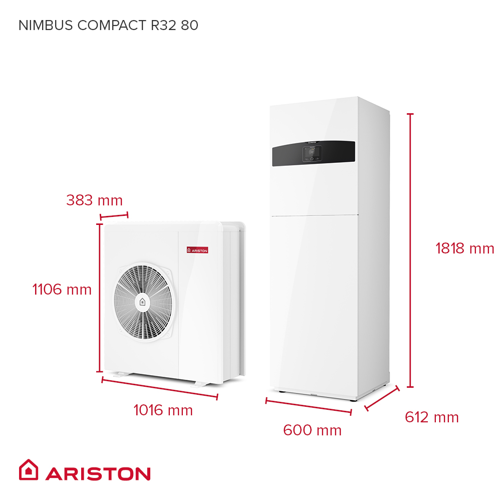 Pakiet - Pompa ciepła powietrze-woda split ARISTON NIMBUS COMPACT S NET R32 7.4 kW 400 V + Moduł naścienny SENSYS HD + Moduł komunikacji internetowej (aplikacja Ariston Net)