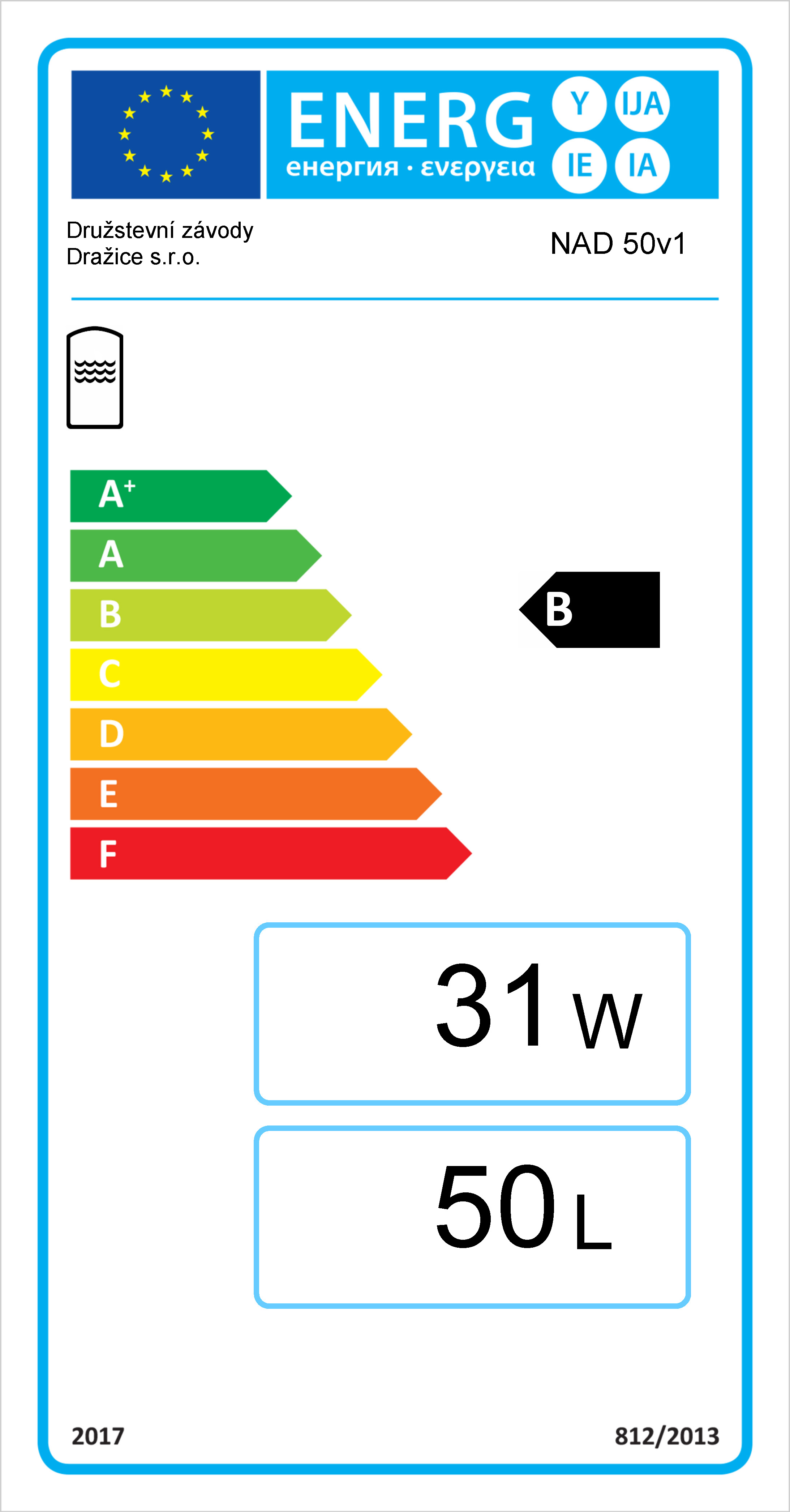 Klasa ErP dla c.o. 55°C, klimat umiarkowany zgodnie z dyrektywą ErP (2019/125/WE)