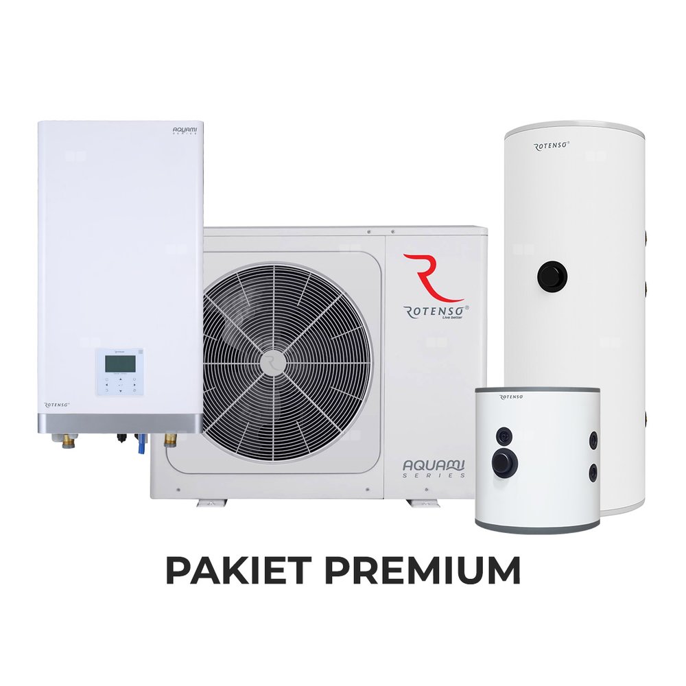 W skład PAKIETU wchodzą:- Pompa ciepła Rotenso Aquami Split 8 kW (symbol: AQS80X1o + AQS100X13i)- Zbiornik buforowy Thermos Store 50 l (symbol: AQT50SBHA),- Zbiornik CWU Rotesno Thermos Ceramic 200 l (symbol: AQT200EC1A),- Wspornik montażowy do pomp ciepła (symbol: IHG520S),- Pompa obiegowa (symbol: RASHSP-PH10),- Magnetyczny separator zanieczyszczeń (symbol: RASMDS-DS10),- Zawór strefowy 3-drogowy z siłownikiem (symbol: RAS3W-ZV).