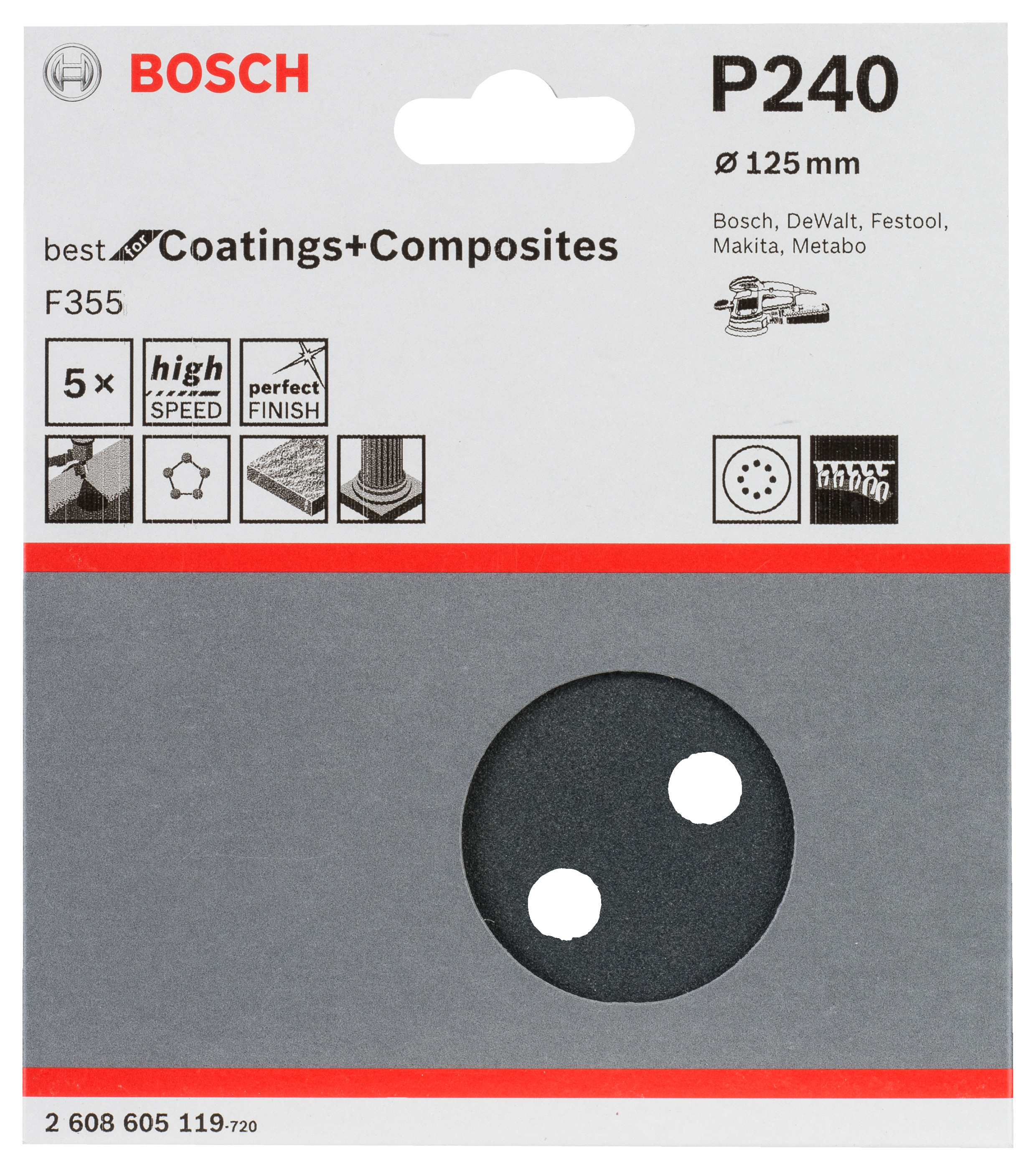 Papier ścierny F355, opakowanie 5 szt. BS D125 G240