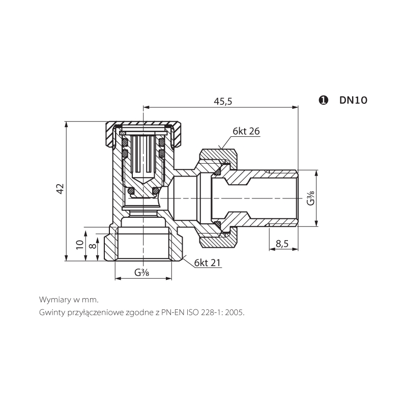PHA-033 Zawór grzejnikowy odcinający kątowy 3/8" PN10