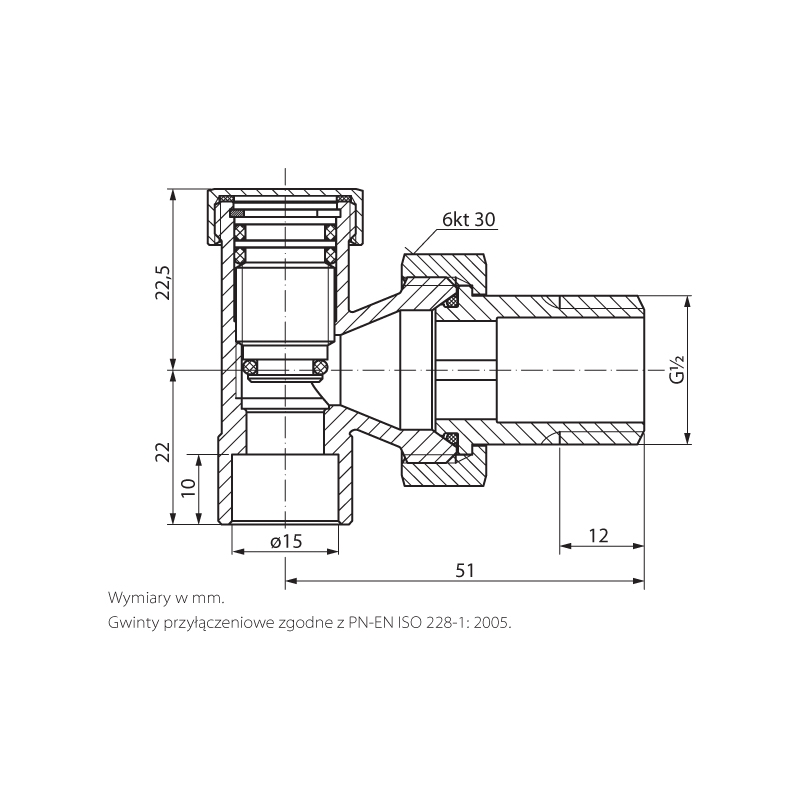 PHA-033/L G1/2xO15 (GZ) PN10 DN15 Zawór grzejnikowy odcinający K do wlutowania CuZn-C PN-M-75002