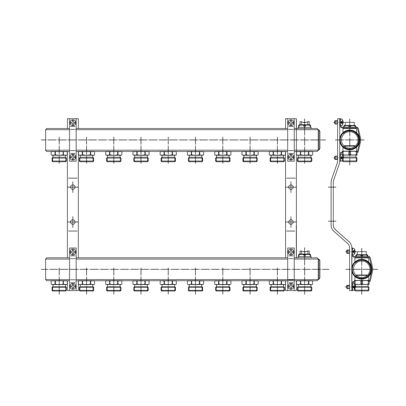 Rozdzielacze mosiężne i stalowe systemu przeznaczone są do instalacji ogrzewania grzejnikowego, płaszczyznowego i wody użytkowej. Rozdzielacze mogą być stosowane w instalacjach, w których czynnikiem roboczym jest woda lub mieszanina wody z glikolem (do 50%). Wszystkie belki rozdzielaczy posiadają gwinty przyłączeniowe z obydwu stron, umożliwia to podłączenie źródła zasilania od strony dogodnej dla instalacji. Komplety rozdzielacza składają się z dwóch belek: zasilającej i powrotnej, zamocowanych na wspornikach montażowych stalowych za pomocą uchwytów. Belki wykonane są z kształtowników z mosiądzu CW617N lub ze stali odpornej na korozję gatunku 1.4301. Rozdzielacze umożliwiają podłączenie od 2 do 12 obwodów instalacji. W zależności od typu i przeznaczenia rozdzielacza, poszczególne belki wyposażone są w łączniki, korki, odpowietrzniki (ręczne lub automatyczne), trójniki, przepływomierze, zawory spustowe, wkładki zaworów regulacyjnych i odcinających, zawory termostatyczne z głowicą i kurki kulowe, ramiona do pompy.