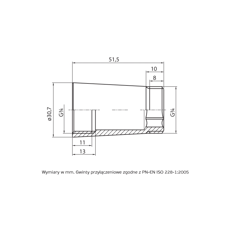 PHA-351 G3/4 WZ PN16 Przedłużka pod baterię chromowana wzmocniona CuZn-C