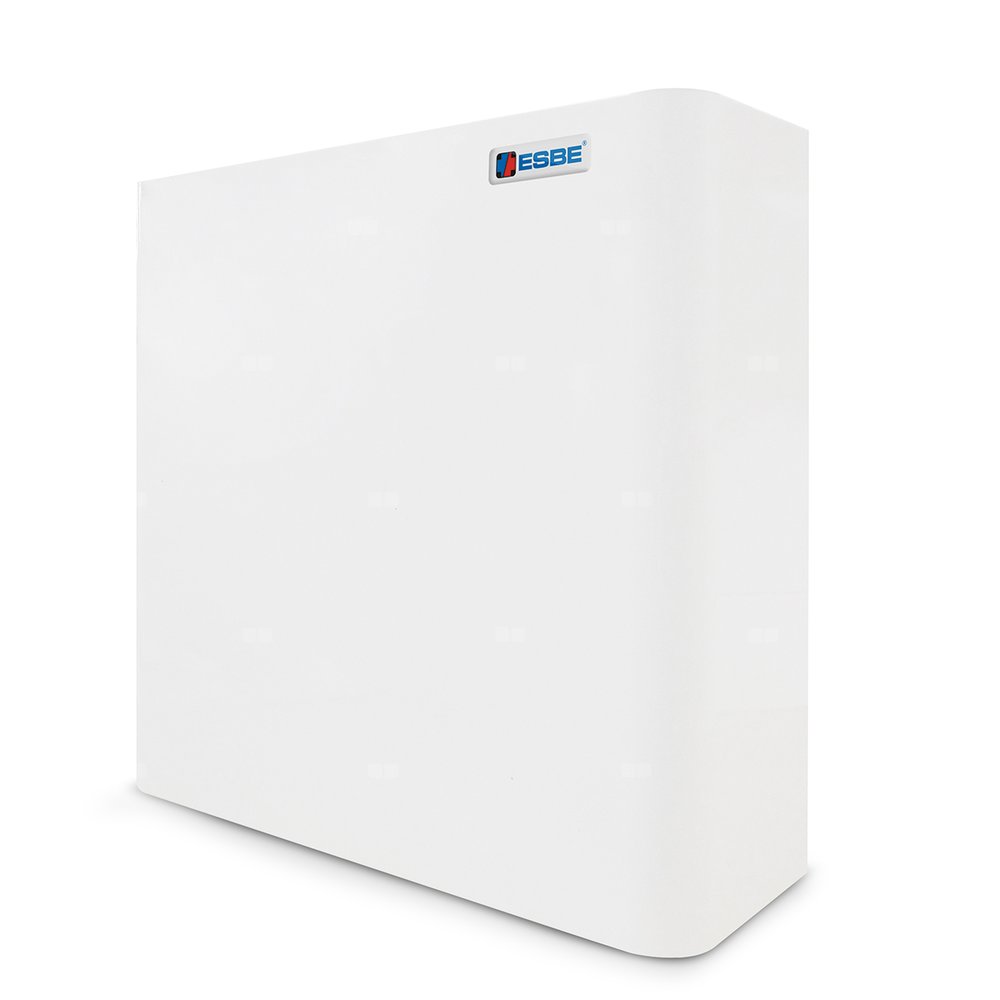 SKS101 to hybrydowa grupa rozdzielająca z serii SKS100, przeznaczona do przygotowania wody pitnej z wykorzystaniem źródeł ciepła, takich jak kominki wodne,piece opalane drewnem i kotły peletowe. Urządzenie wyposażone jest w płytowy wymiennik ciepła o mocy 20 kW, zawór rozdzielający. Przyłącza A, C – G ½", B, E, F – G ¾". SKS101 może dostarczyć do 12 l/min wody o temperaturze 45 °C. Opcjonalny sterownik CSK211 umożliwia automatyczne sterowanie pracą pompy i źródła ciepła, a dla bezpieczeństwa zaleca się zastosowanie termostatycznego zaworu mieszającego ESBE.