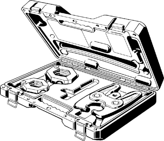Zestaw pierścieni zaciskowych, PT2, Z2, do metalowych systemów zaprasowywanych, zalecane do Pressgun 6 Plus, Pressgun 6, Pressgun 6B, Pressgun 5, Pressgun 4E, Pressgun 4B, zaciskarka PT3-E/EH, PT3-AH, zaciskarka Typ 2(PT2), zaciskarka akumulatorowa producenta Holger Clasen, zaciskarki Geberit/Mapress Typ PWH 75, Typ N 230 V i Typ N Akku, zaciskarki Geberit/Mapress Typ EFP II, ACO 1, ECO 1, ACO 201, ECO 201, AFP 201, EFP 201, ACO 202 i ECO 202, zaciskarki Ridgid RP 10-S, RP 10-B, RP 330C/330B, RP 340. Wyposażenie: walizka systemowa nr wzoru 2202, wkładka nr wzoru 2202.90, wkładka walizki pierścienie zaciskowe nr wzoru 2202.5, pierścień zaciskowy nr katalogowy 472 719, 472 726, szczęka przegubowa PT2 nr katalogowy 472 740, stal fosforanowana. Wyposażenie: Walizka, nr wzoru 2296.4, nr kat. 472 764, do szczęki przegubowej: Z2 dla d: 42-54 ilość w zestawie: 3