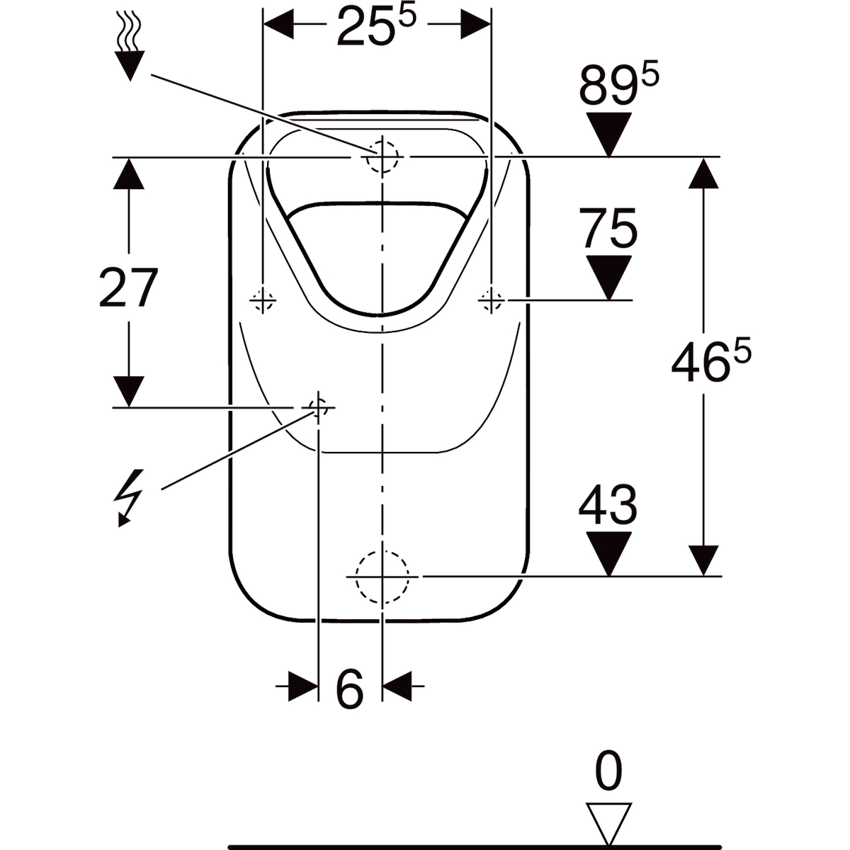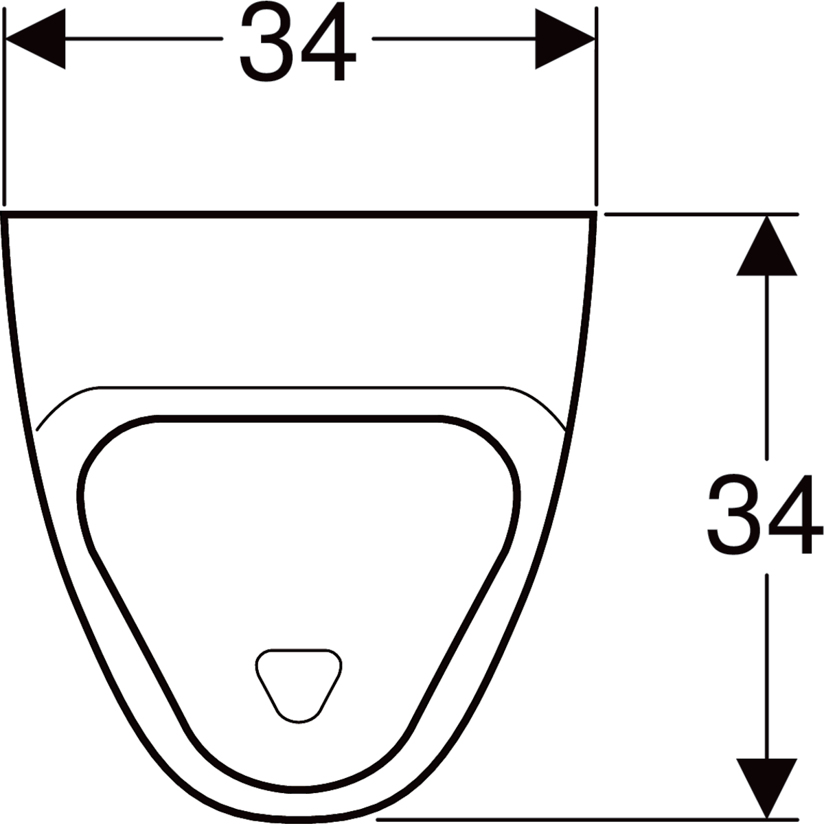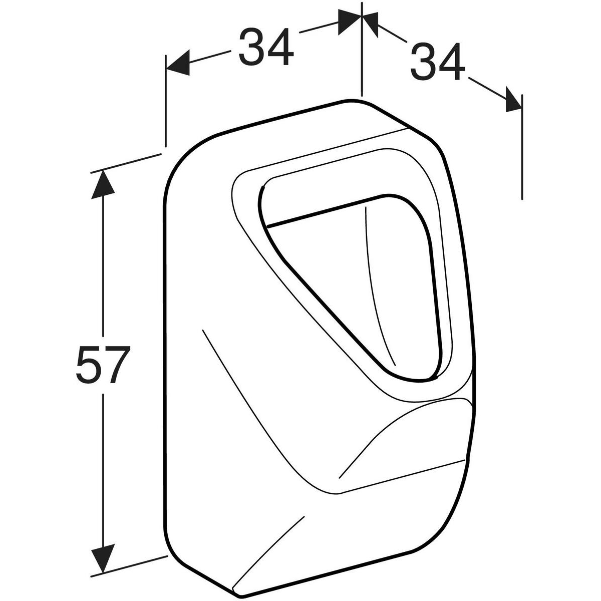 Pisuar Geberit Alivio, dopływ z tyłu, odpływ do tyłu lub w dół: T=34cm, Odpływ=Do tyłu lub w dół, Dopływ=Z tyłu, Biały