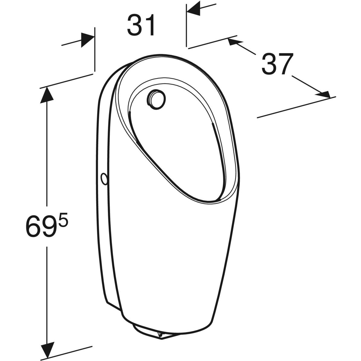 Pisuar Geberit Preda do wbudowanego sterowania: T=37cm, Odpływ=Do tyłu, Dopływ=Z tyłu, Biały