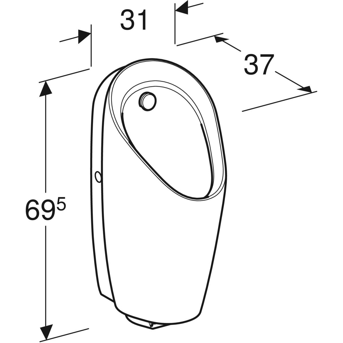 Pisuar Geberit Preda z wbudowanym systemem spłukiwania pisuarów, zasilanie generatorowe: T=37cm, Odpływ=Do tyłu, Dopływ=Z tyłu, Biały