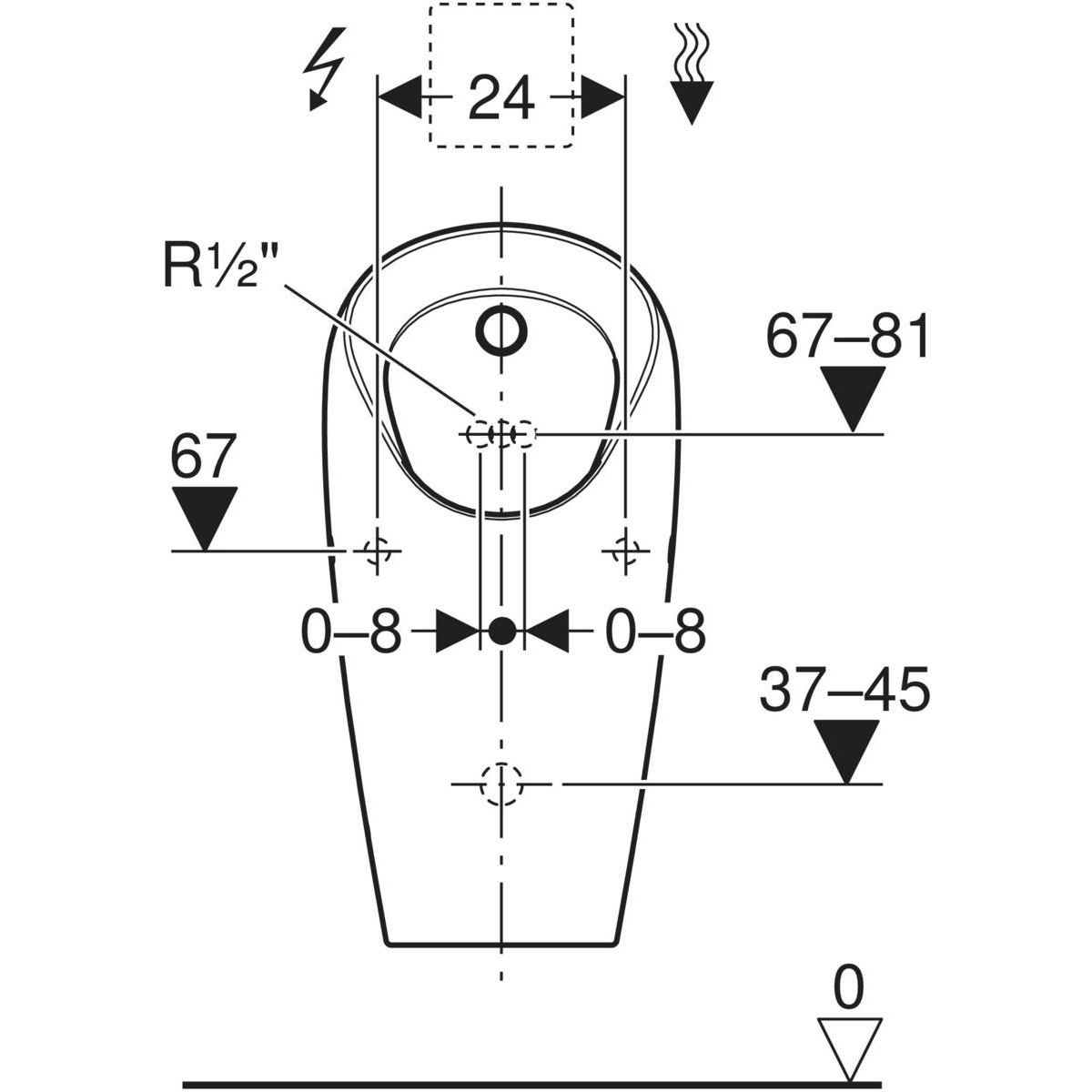 Pisuar Geberit Selva do podtynkowego zaworu spłukującego do pisuarów: T=37cm, Dopływ=Z tyłu, Biały