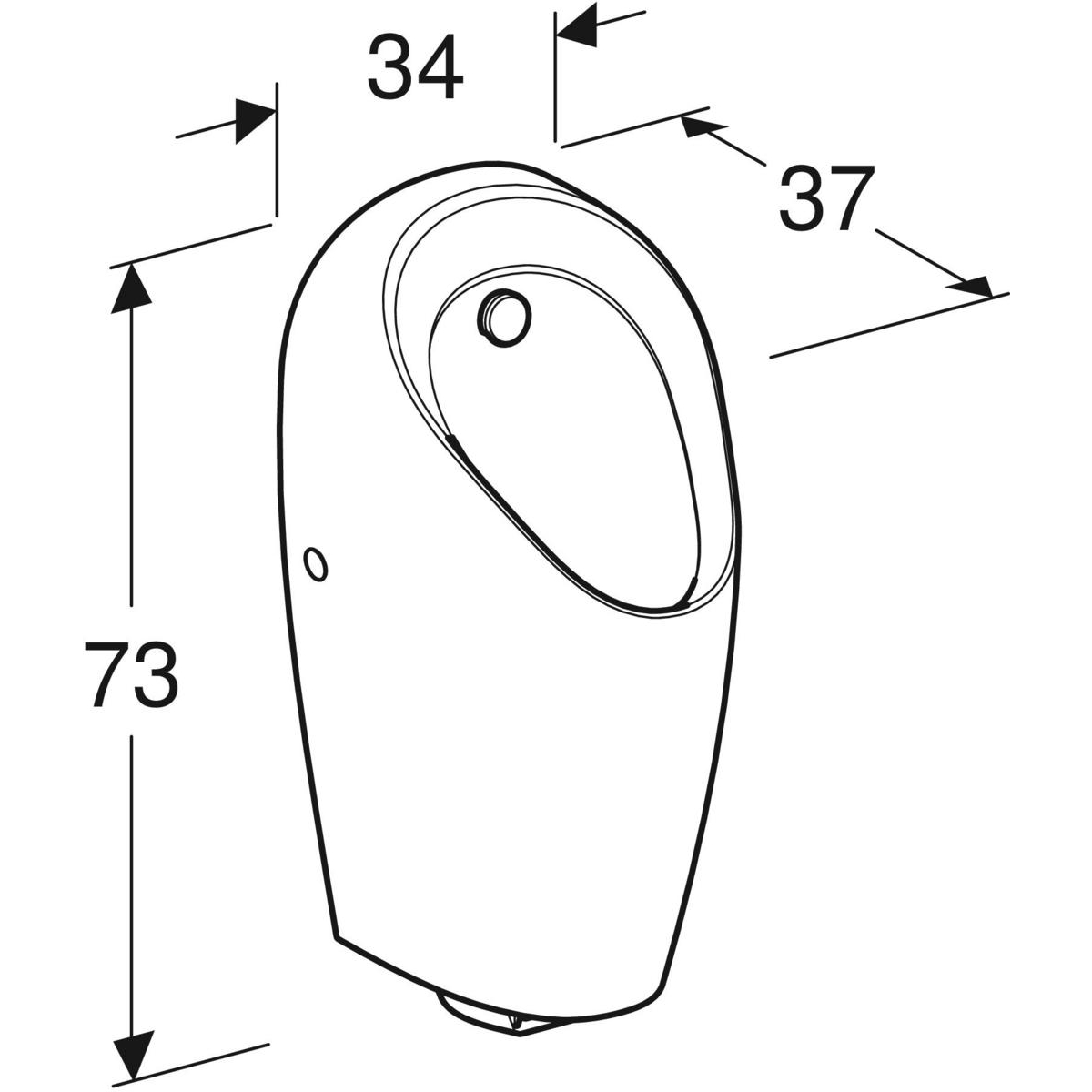 Pisuar Geberit Selva z wbudowanym systemem spłukiwania pisuarów, zasilanie generatorowe: T=37cm, Odpływ=Do tyłu, Dopływ=Z tyłu, Biały